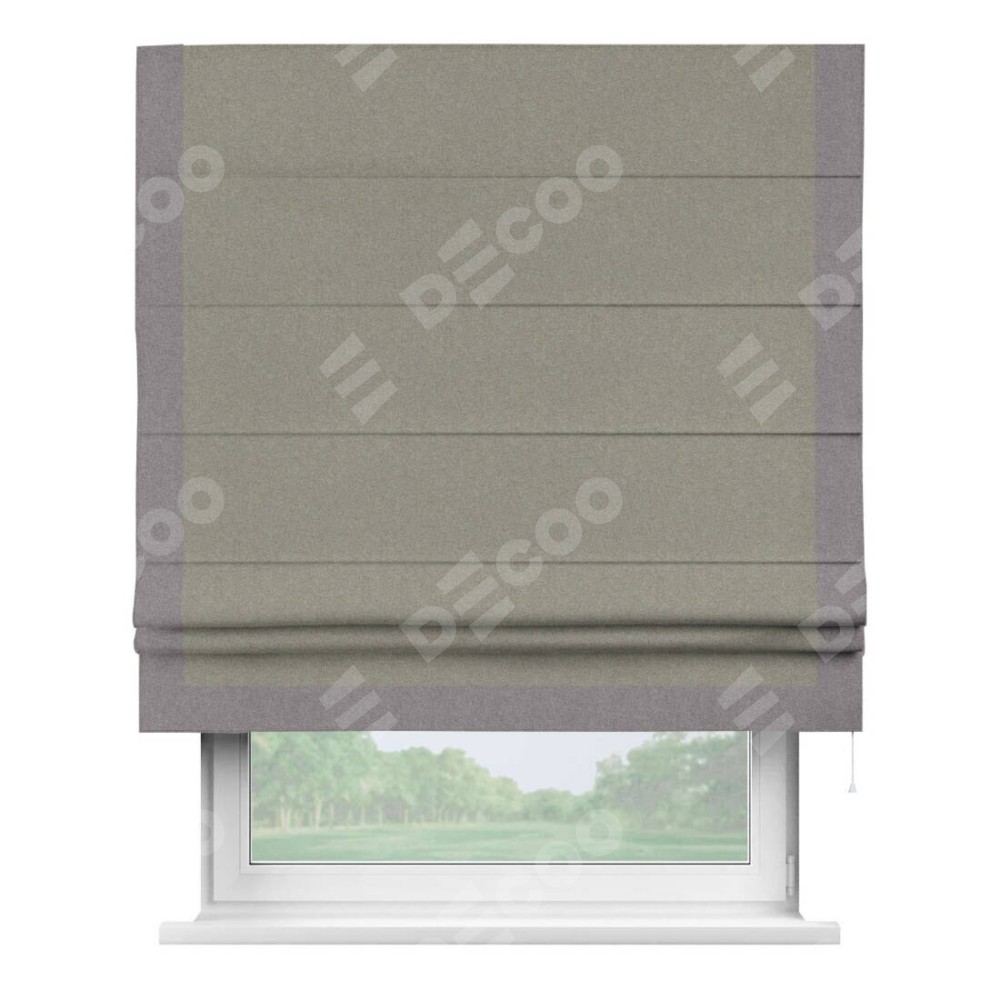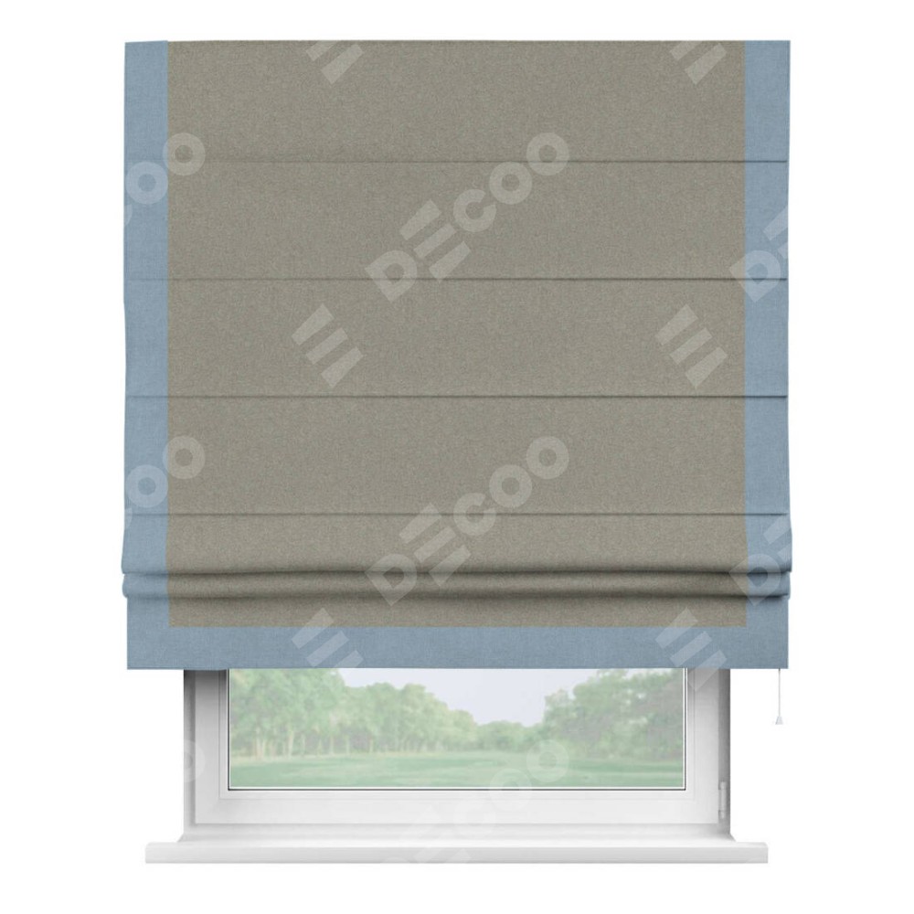 Римская штора производителя «Cortin», используется для проёма, пошита из ткани лён блэкаут светло-бежевый, артикул 69445. Отделка шторы кантом «Виктория», ткань для канта используется из льна разной расцветки на выбор. Имеет универсальный механизм и подходит для монтажа: на потолок, на стену и в нишу.