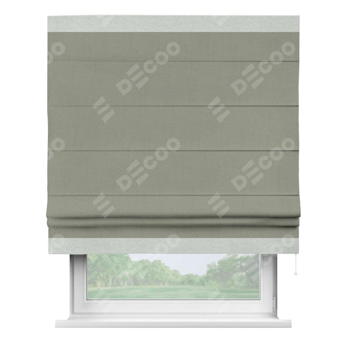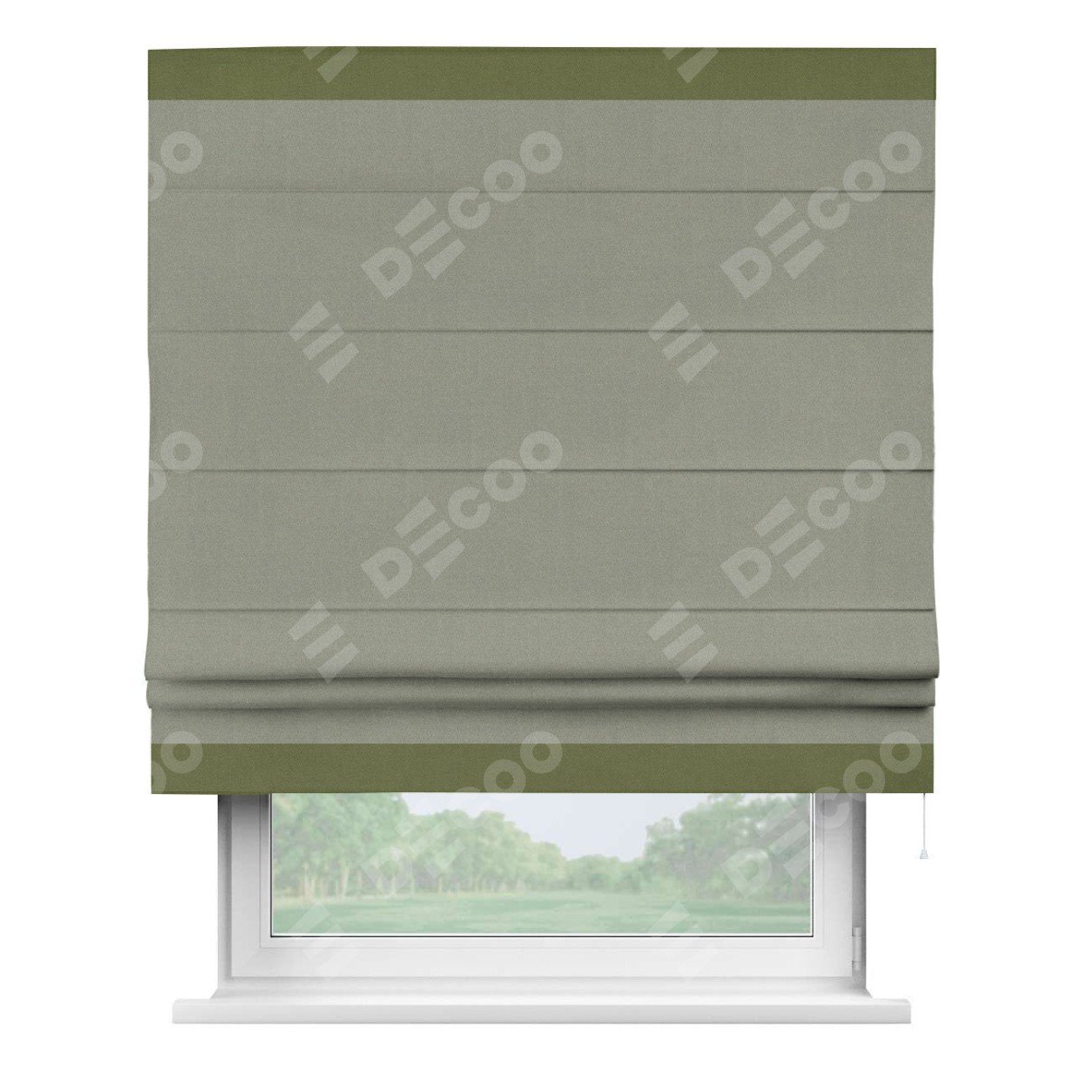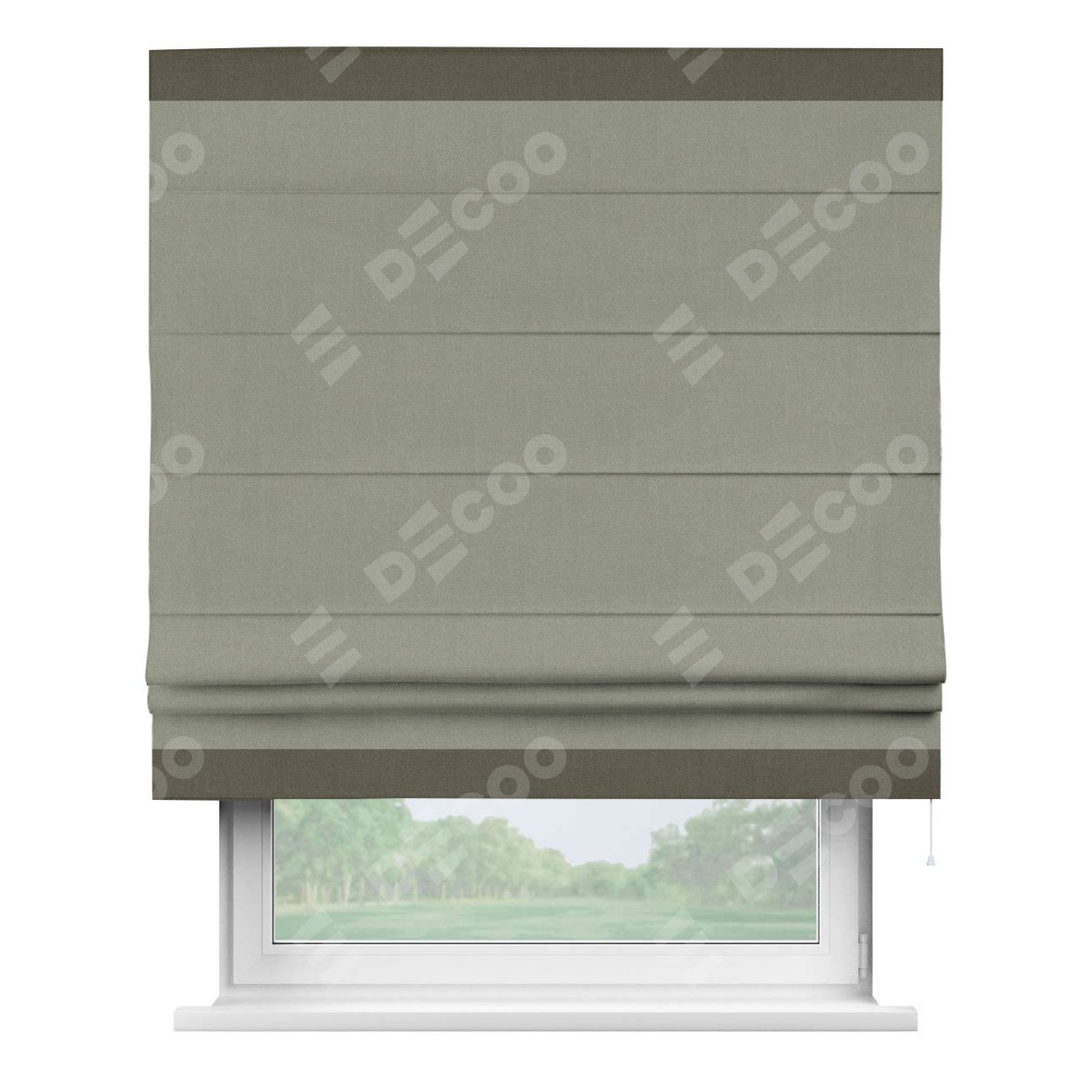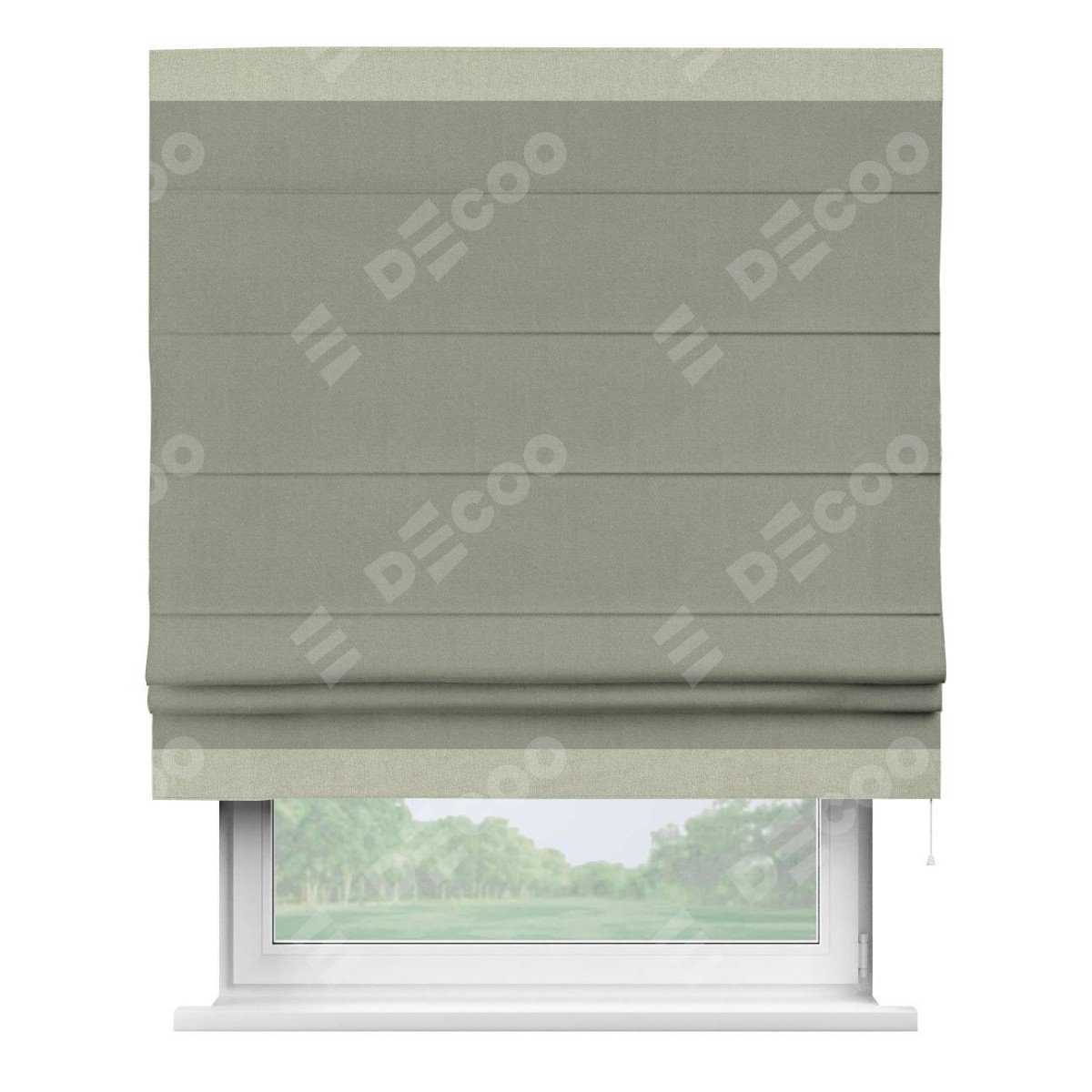 Римская штора производителя «Cortin», используется для проёма, пошита из ткани лён блэкаут светло-серый, артикул 69446. Отделка шторы кантом «Горизонт», ткань для канта используется из льна разной расцветки на выбор. Имеет универсальный механизм и подходит для монтажа: на потолок, на стену и в нишу.