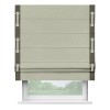 Римская штора производителя «Cortin», используется для проёма, пошита из ткани лён блэкаут серо-бежевый, артикул 69450. Отделка шторы кантом «Стрим Дуо» на кантах расположены люверсы с пояском, ткань для канта используется из льна разной расцветки на выбор. Ткань для пояска обычно используется из основной ткани шторы, а так же можно сделать из любой расцветки по желанию. Имеет универсальный механизм и подходит для монтажа: на потолок, на стену и в нишу.