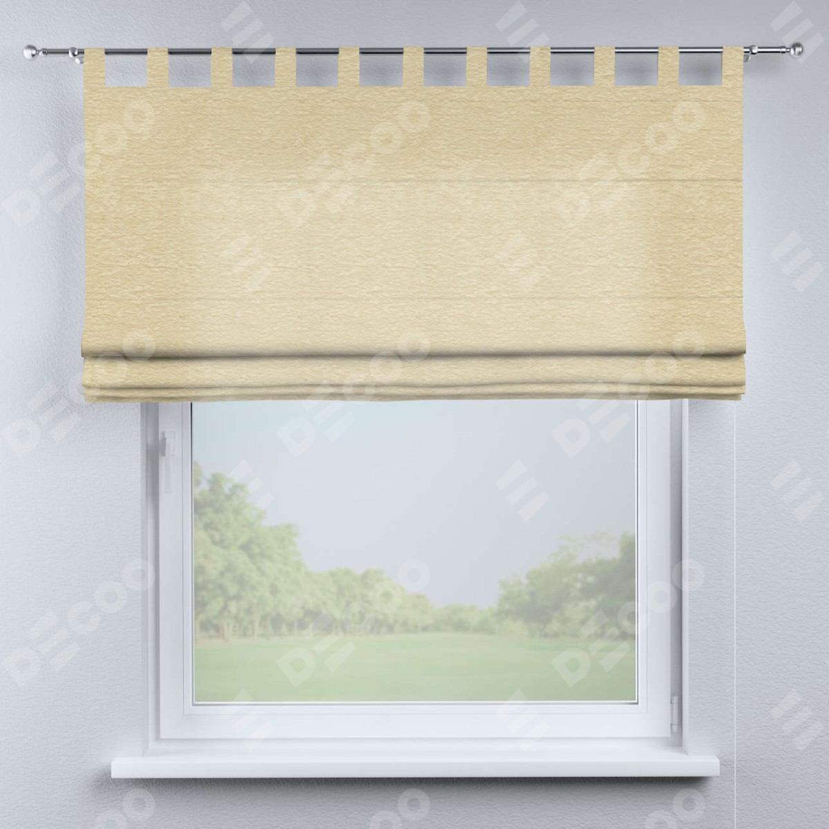 Римская штора производителя «Cortin», используется для проёма, пошита из ткани софт однотонный светло-бежевый, артикул ткани 54426. Данная модель пошита на петлях, комплектуется на выбор круглым карнизом и подходит для монтажа на стену. Римская штора на петлях имеет простую систему регулировки высоты, отличительным преимуществом данной модели является простой способ монтажа. Достаточно повесить ее на трубу и штора готова!
