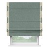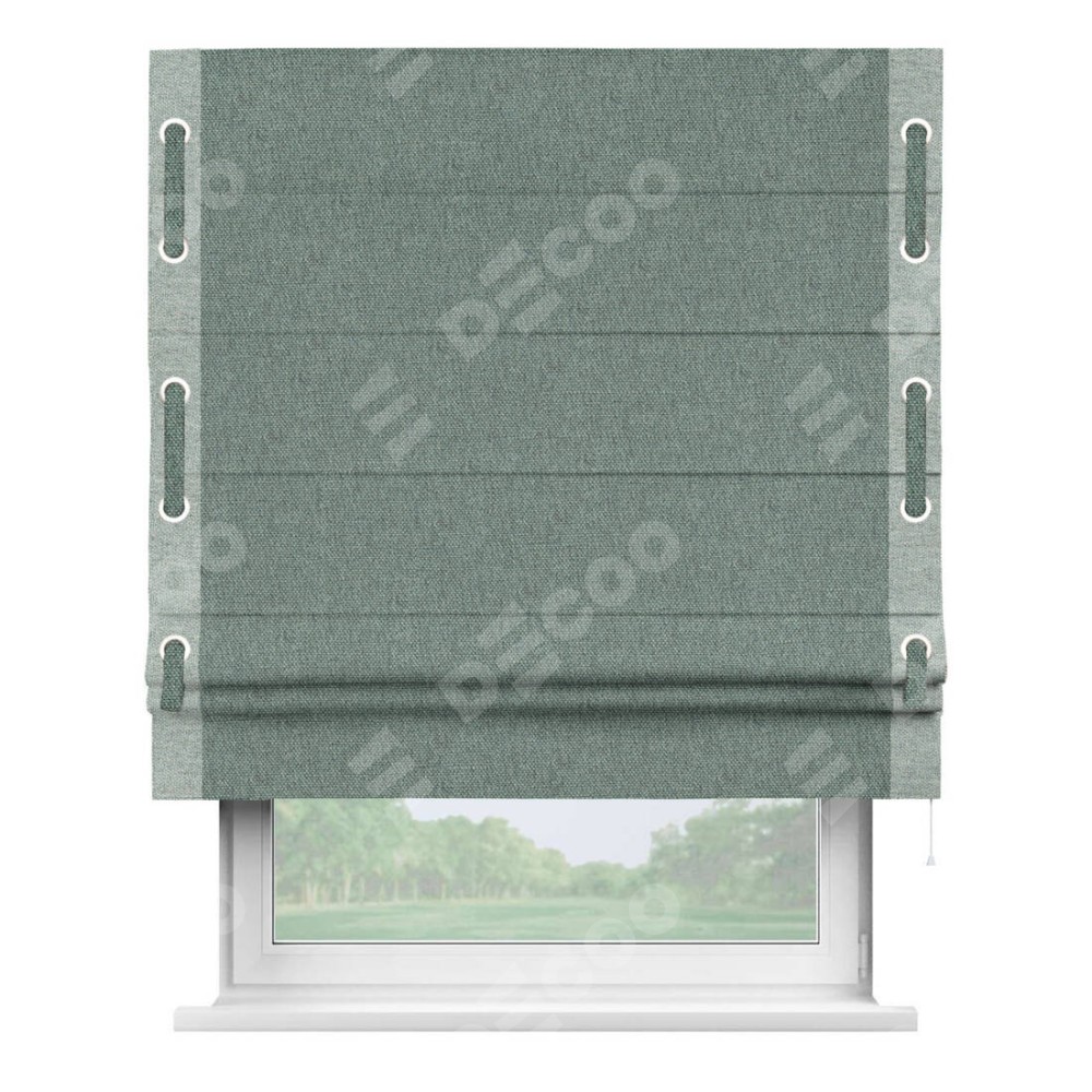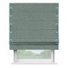 Римская штора производителя «Cortin», используется для проёма, пошита из ткани стиф димаут серо-голубой, артикул 44029. Отделка шторы кантом «Стрим Дуо» на кантах расположены люверсы с пояском, ткань для канта используется из стифа разной расцветки на выбор. Ткань для пояска обычно используется из основной ткани шторы, а так же можно сделать из любой расцветки по желанию. Имеет универсальный механизм и подходит для монтажа: на потолок, на стену и в нишу.