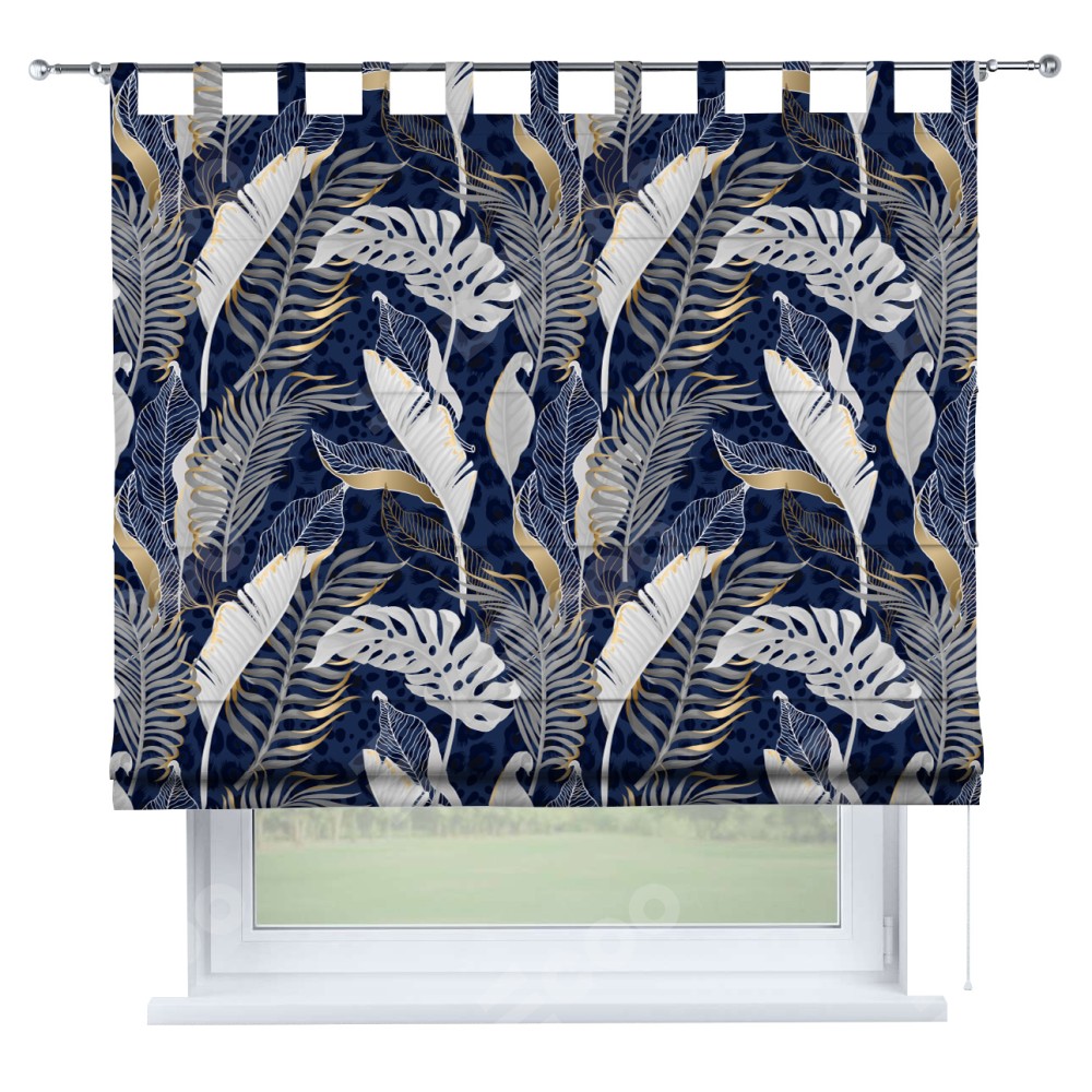 Римская штора производителя «Cortin», используется для проёма, пошита из ткани блэкаут с нанесением сублимационной печати «Сине-золотые джунгли». Данная модель пошита на петлях, комплектуется на выбор круглым карнизом и подходит для монтажа на стену. Римская штора на петлях имеет простую систему регулировки высоты, отличительным преимуществом данной модели является простой способ монтажа. Достаточно повесить ее на трубу и штора готова!