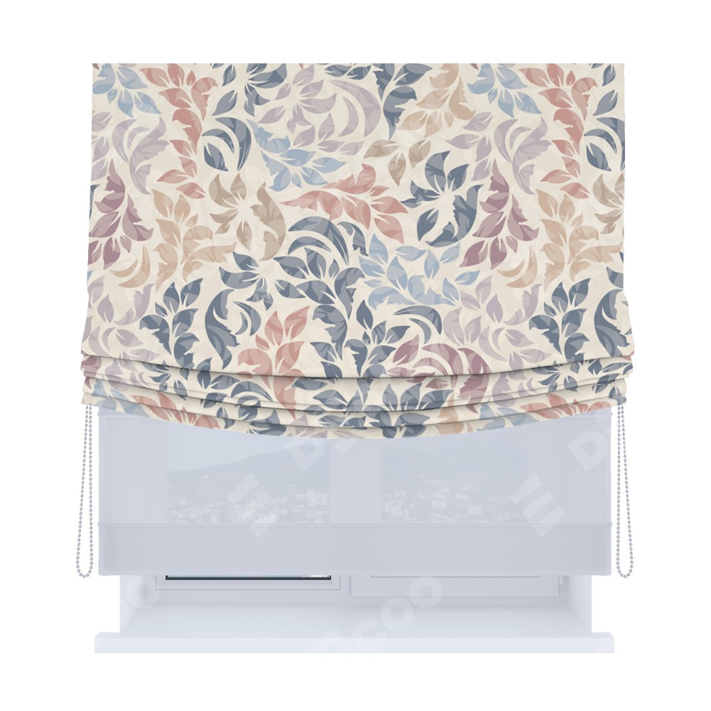 Римская штора день-ночь производителя «Cortin», используется для проёма, пошита из двух полотен, с лицевой блэкаут с нанесением сублимационной печати «Цветочная аура», вторая ткань тюль (по стандарту комплектуется тюль белого цвета артикул V-01). Имеет универсальный механизм и подходит для монтажа: на потолок, на стену и в нишу. Удобное управление каждой шторой отдельно.