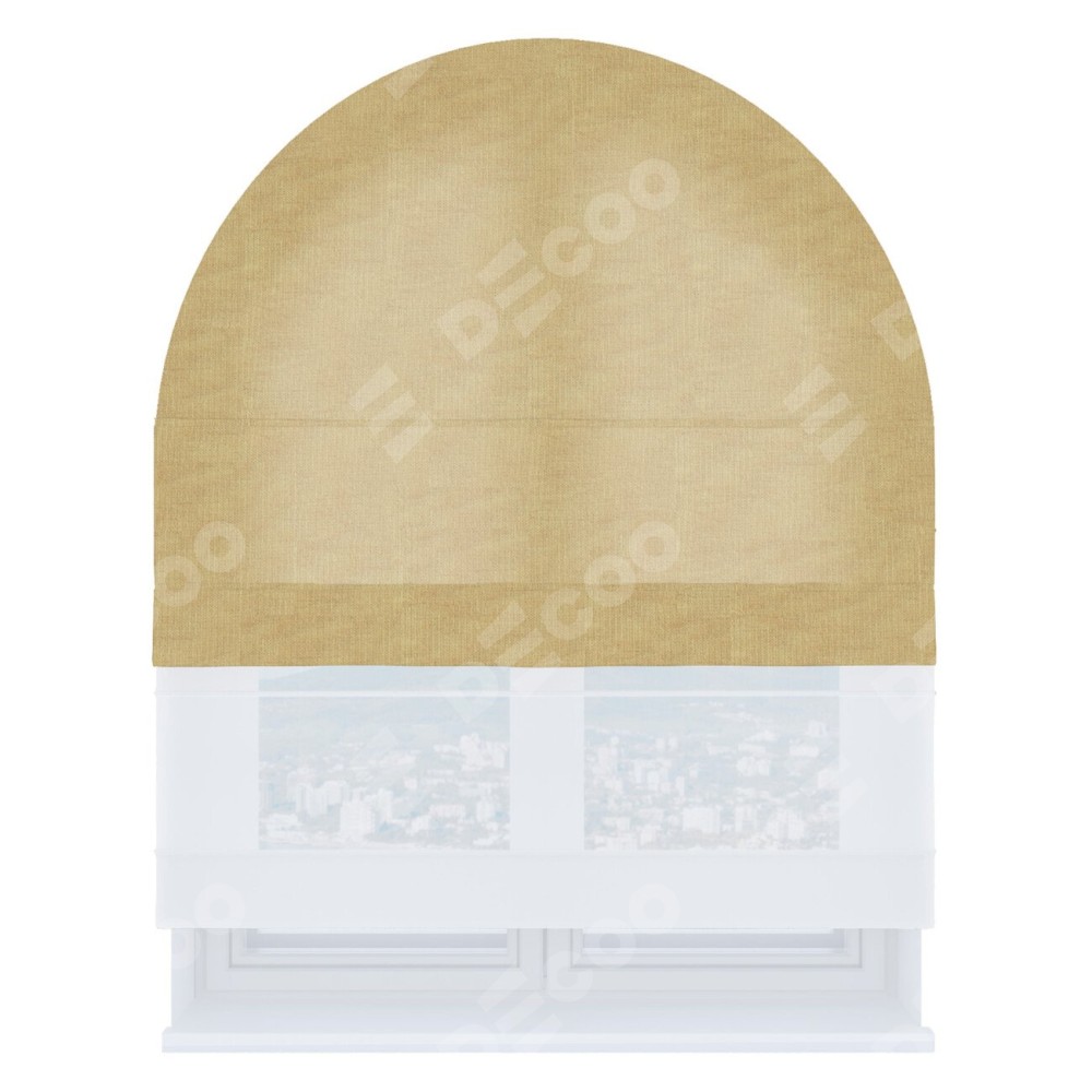 Римская штора день-ночь производителя «Cortin», используется для арочного проёма, пошита из двух полотен, с лицевой стороны канвас абрикосовый артикул v-448, вторая ткань тюль (по стандарту комплектуется тюль белого цвета артикул V-01). Штора шьётся по индивидуальным размерам, для данного типа римской шторы возможная ширина от 60 до 300 см. Удобное управление каждой шторой отдельно.
