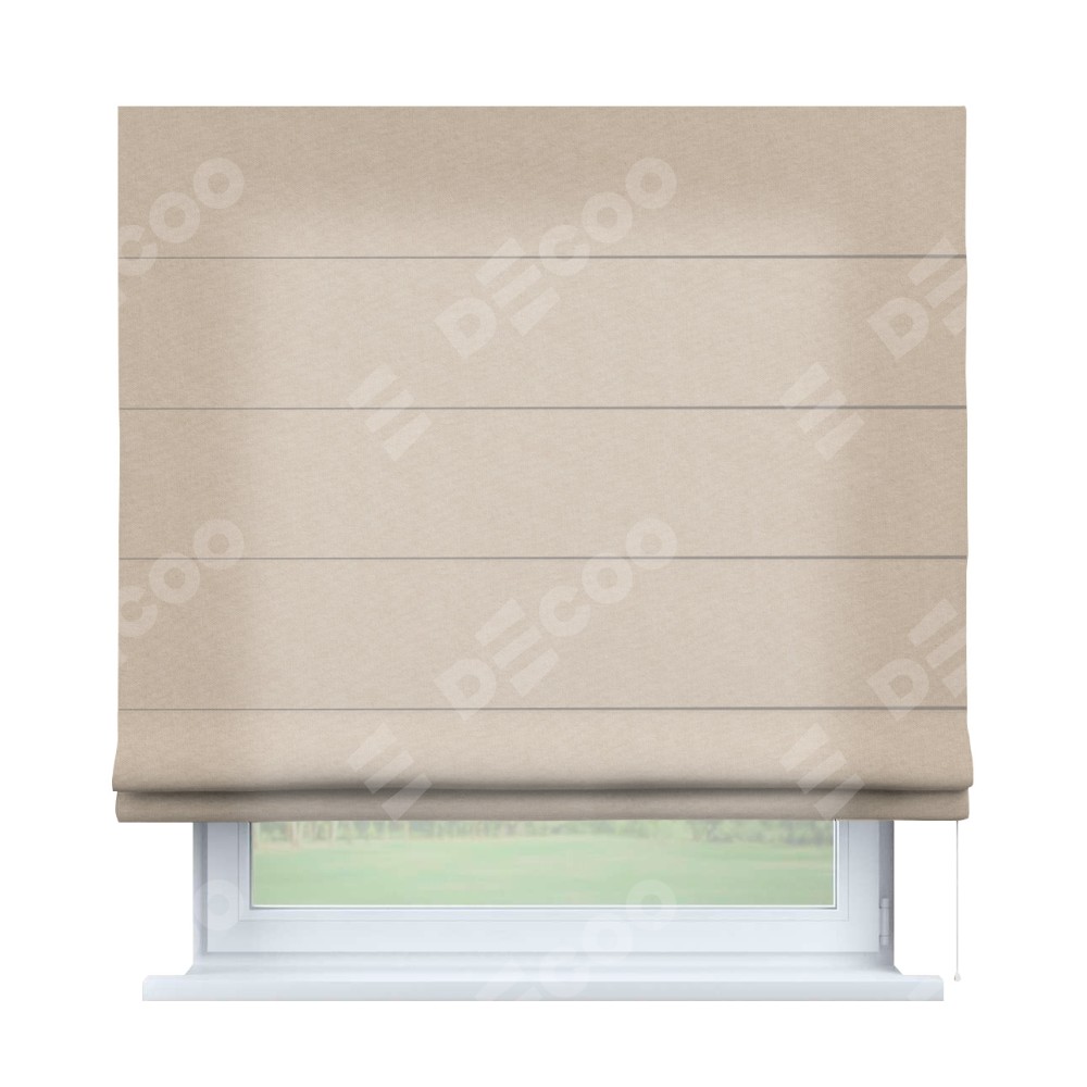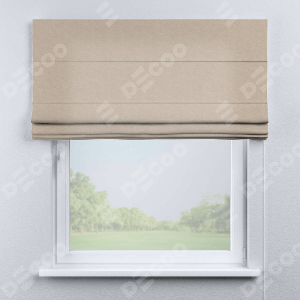 Римская штора производителя «Cortin», используется для проёма, пошита из ткани канвас кофе с молоком, артикул ткани v-07. Имеет универсальный механизм и подходит для монтажа: на потолок, на стену и в нишу.