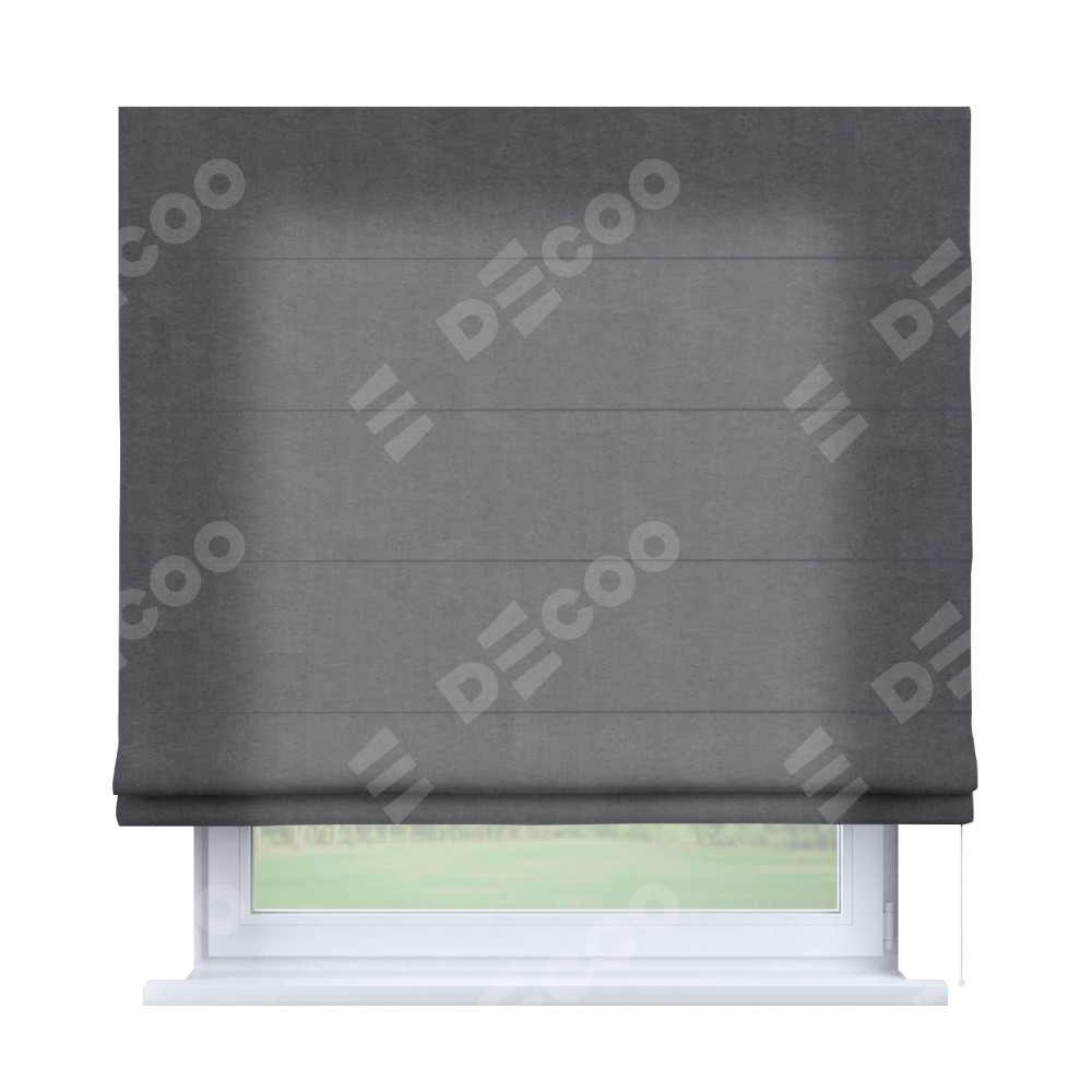 Римская штора производителя «Cortin», используется для проёма, пошита из ткани канвас лавандовый, артикул ткани v-223. Имеет универсальный механизм и подходит для монтажа: на потолок, на стену и в нишу.