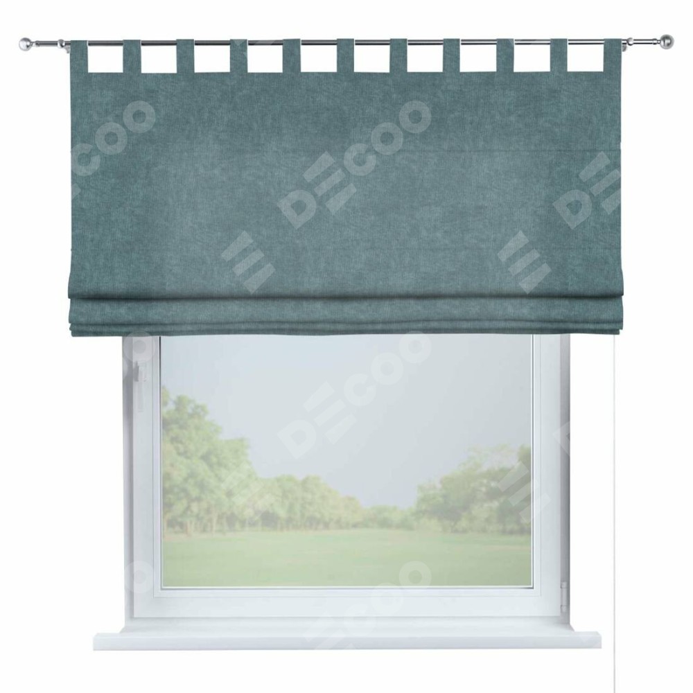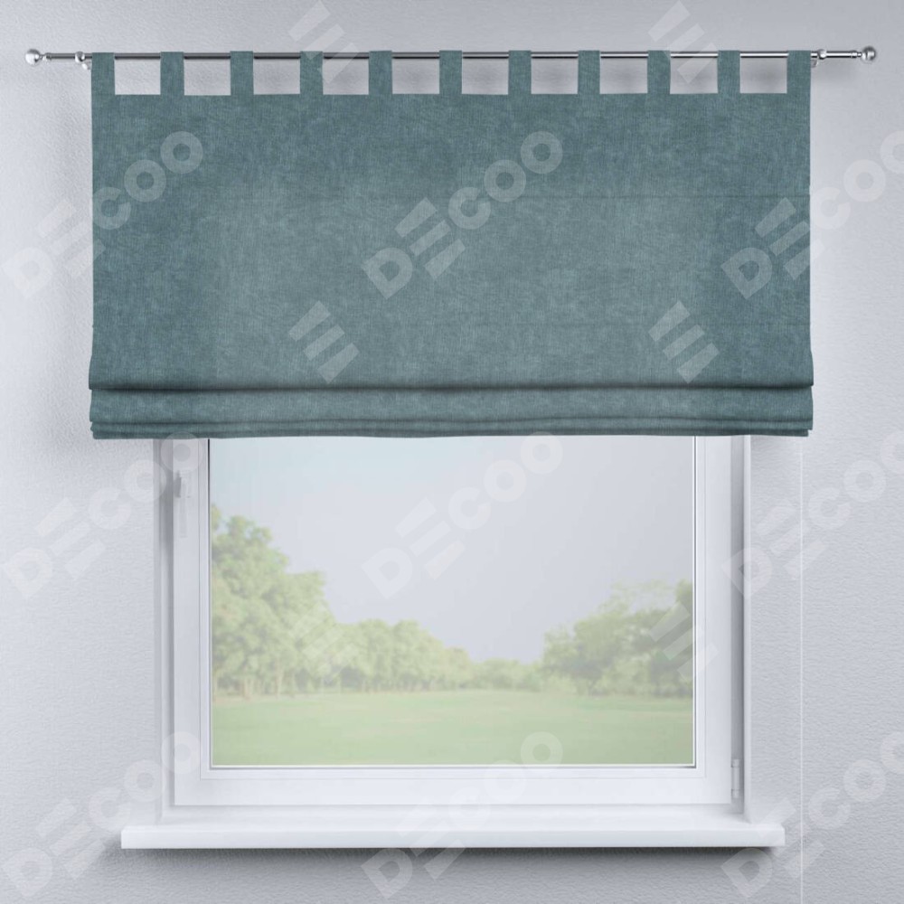 Римская штора производителя «Cortin», используется для проёма, пошита из ткани канвас серо-голубой, артикул ткани v-330. Данная модель пошита на петлях, комплектуется на выбор круглым карнизом и подходит для монтажа на стену. Римская штора на петлях имеет простую систему регулировки высоты, отличительным преимуществом данной модели является простой способ монтажа. Достаточно повесить ее на трубу и штора готова!
