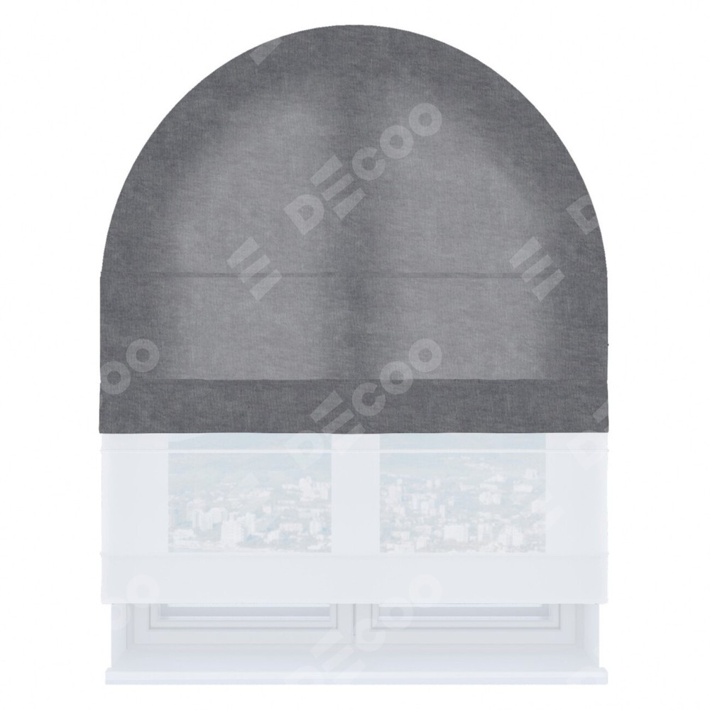 Римская штора день-ночь производителя «Cortin», используется для арочного проёма, пошита из двух полотен, с лицевой стороны канвас стальной артикул v-1082, вторая ткань тюль (по стандарту комплектуется тюль белого цвета артикул V-01). Штора шьётся по индивидуальным размерам, для данного типа римской шторы возможная ширина от 60 до 300 см. Удобное управление каждой шторой отдельно.