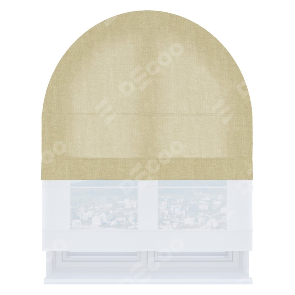 Римская штора день-ночь производителя «Cortin», используется для арочного проёма, пошита из двух полотен, с лицевой стороны канвас тёмно-бежевый артикул v-196, вторая ткань тюль (по стандарту комплектуется тюль белого цвета артикул V-01). Штора шьётся по индивидуальным размерам, для данного типа римской шторы возможная ширина от 60 до 300 см. Удобное управление каждой шторой отдельно.