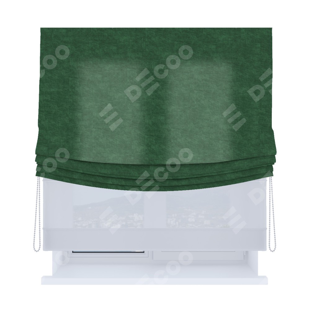 Римская штора день-ночь производителя «Cortin», используется для проёма, пошита из двух полотен, с лицевой стороны канвас тёмно-зелёный артикул v-469, вторая ткань тюль (по стандарту комплектуется тюль белого цвета артикул V-01). Имеет универсальный механизм и подходит для монтажа: на потолок, на стену и в нишу. Удобное управление каждой шторой отдельно.