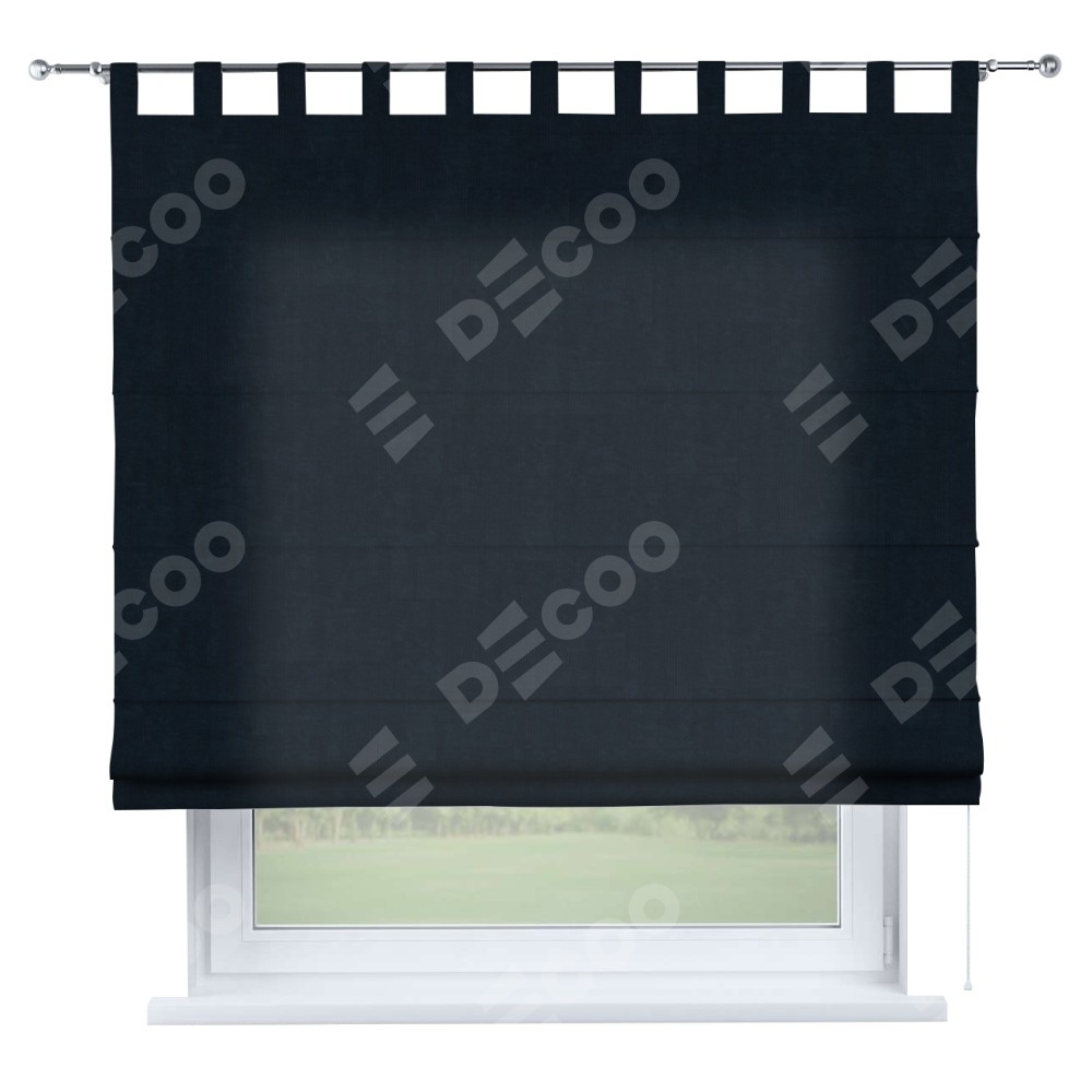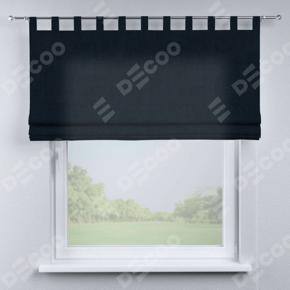 Римская штора производителя «Cortin», используется для проёма, пошита из ткани канвас тёмно-синий, артикул ткани v-206. Данная модель пошита на петлях, комплектуется на выбор круглым карнизом и подходит для монтажа на стену. Римская штора на петлях имеет простую систему регулировки высоты, отличительным преимуществом данной модели является простой способ монтажа. Достаточно повесить ее на трубу и штора готова!