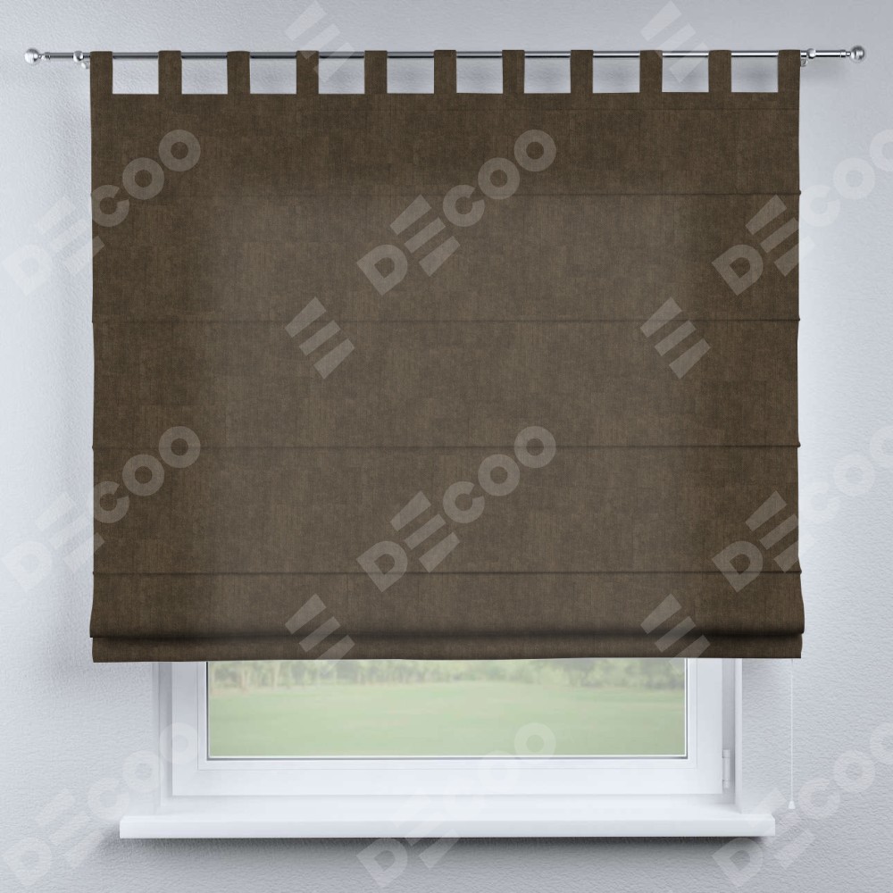 Римская штора производителя «Cortin», используется для проёма, пошита из ткани канвас шоколадный, артикул ткани v-193. Данная модель пошита на петлях, комплектуется на выбор круглым карнизом и подходит для монтажа на стену. Римская штора на петлях имеет простую систему регулировки высоты, отличительным преимуществом данной модели является простой способ монтажа. Достаточно повесить ее на трубу и штора готова!