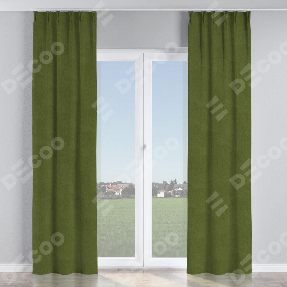 Комплект прямых штор, от производителя «Cortin», пошиты из ткани лён димаут салатовый, артикул ткани 91002. С изнаночной стороны в верхней части штор пристрачивается шторная лента с декоративными складками «Кустик». Для создания элегантных складок прямые шторы шьются по стандарту с коэффициентом 1:2 (на 100 см. ширины проёма 200 см. ширины ткани).