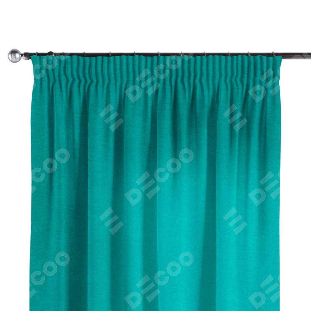 Комплект прямых штор, от производителя «Cortin», пошиты из ткани канвас бирюзовый, артикул ткани v-1048. С изнаночной стороны в верхней части штор пристрачивается шторная лента с декоративными складками «Карандаш». Для создания элегантных складок прямые шторы шьются по стандарту с коэффициентом 1:2 (на 100 см. ширины проёма 200 см. ширины ткани).
