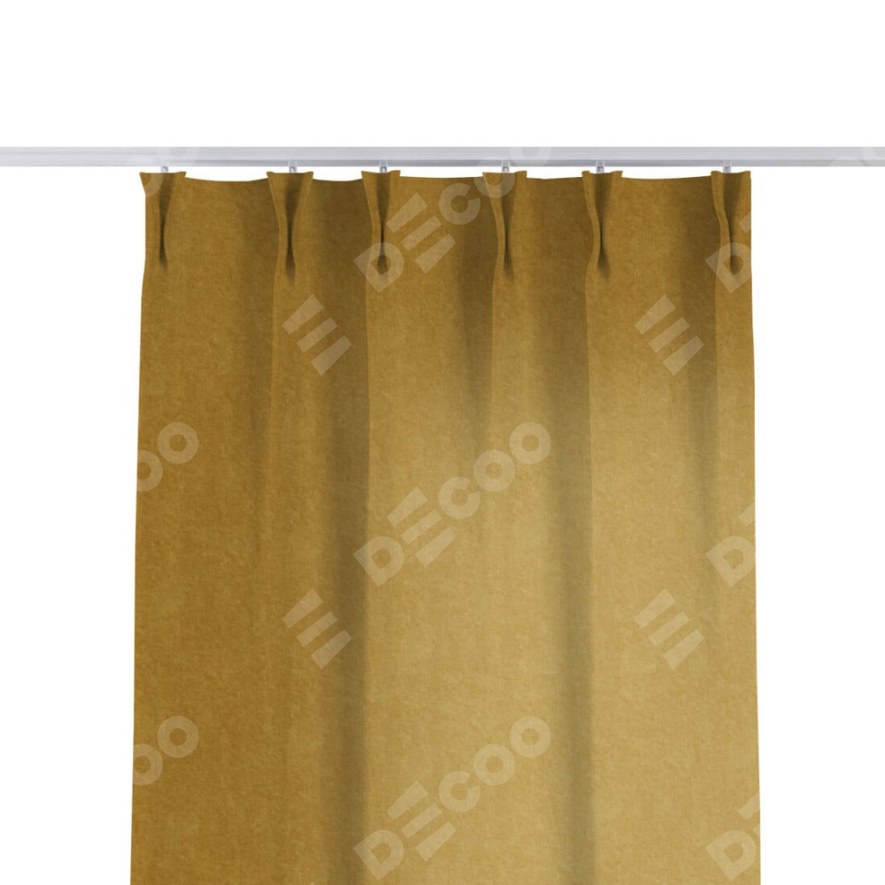 Комплект прямых штор, от производителя «Cortin», пошиты из ткани канвас горчица, артикул ткани v-476. С изнаночной стороны в верхней части штор пристрачивается шторная лента с декоративными складками «Кустик». Для создания элегантных складок прямые шторы шьются по стандарту с коэффициентом 1:2 (на 100 см. ширины проёма 200 см. ширины ткани).
