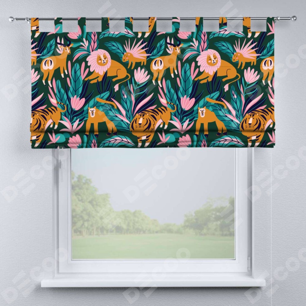 Римская штора производителя «Cortin», используется для проёма, пошита из ткани блэкаут с нанесением сублимационной печати «Дикие животные». Данная модель пошита на петлях, комплектуется на выбор круглым карнизом и подходит для монтажа на стену. Римская штора на петлях имеет простую систему регулировки высоты, отличительным преимуществом данной модели является простой способ монтажа. Достаточно повесить ее на трубу и штора готова!