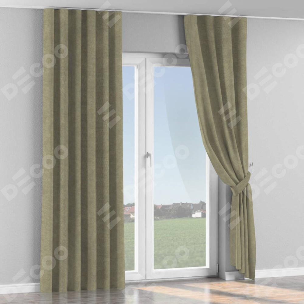 Комплект прямых штор, от производителя «Cortin», пошиты из ткани канвас капучино, артикул ткани v-211. С изнаночной стороны в верхней части штор пристрачивается шторная лента с декоративными складками «Волна». Для создания элегантных складок прямые шторы шьются по стандарту с коэффициентом 1:2 (на 100 см. ширины проёма 200 см. ширины ткани).