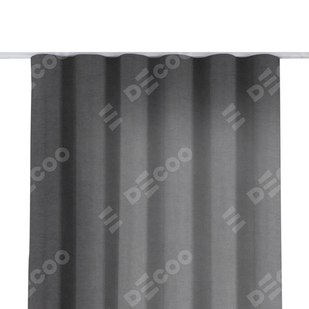Комплект прямых штор, от производителя «Cortin», пошиты из ткани канвас мокрый асфальт, артикул ткани v-1083. С изнаночной стороны в верхней части штор пристрачивается шторная лента с декоративными складками «Волна». Для создания элегантных складок прямые шторы шьются по стандарту с коэффициентом 1:2 (на 100 см. ширины проёма 200 см. ширины ткани).