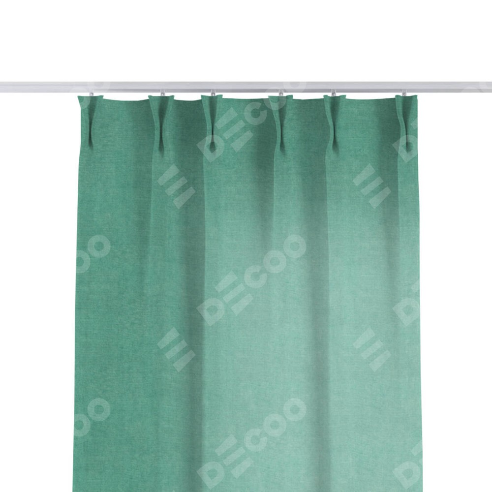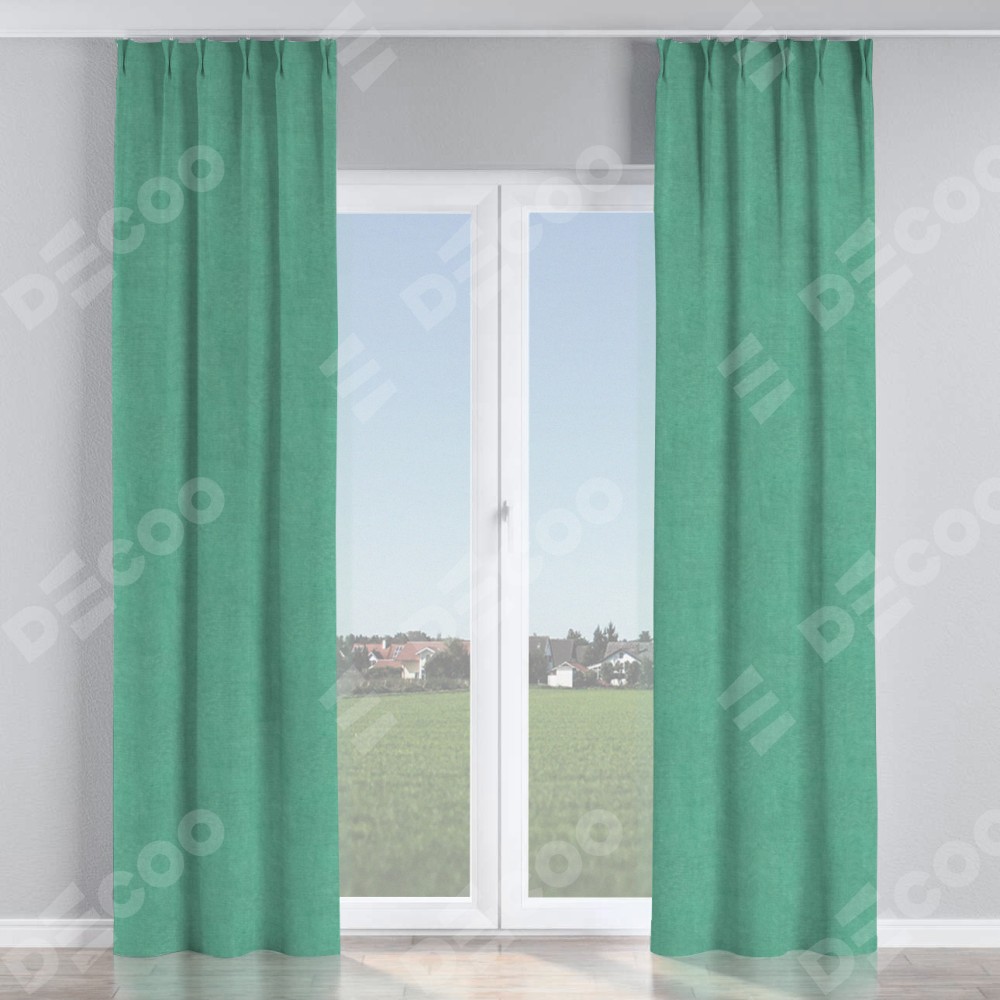 Комплект прямых штор, от производителя «Cortin», пошиты из ткани канвас канвас мятный, артикул ткани v-248. С изнаночной стороны в верхней части штор пристрачивается шторная лента с декоративными складками «Кустик». Для создания элегантных складок прямые шторы шьются по стандарту с коэффициентом 1:2 (на 100 см. ширины проёма 200 см. ширины ткани).