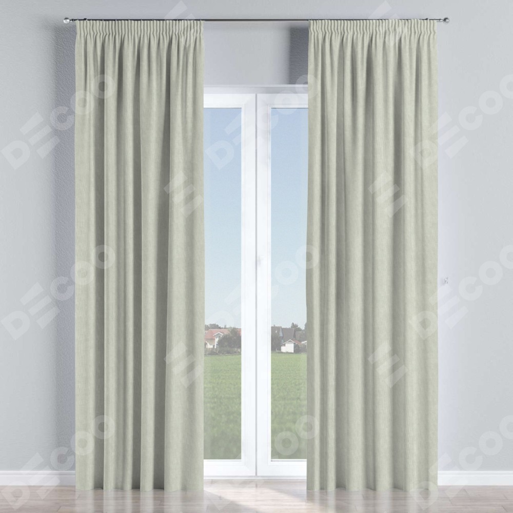 Комплект прямых штор, от производителя «Cortin», пошиты из ткани канвас светло-серый, артикул ткани v-371. С изнаночной стороны в верхней части штор пристрачивается шторная лента с декоративными складками «Карандаш». Для создания элегантных складок прямые шторы шьются по стандарту с коэффициентом 1:2 (на 100 см. ширины проёма 200 см. ширины ткани).