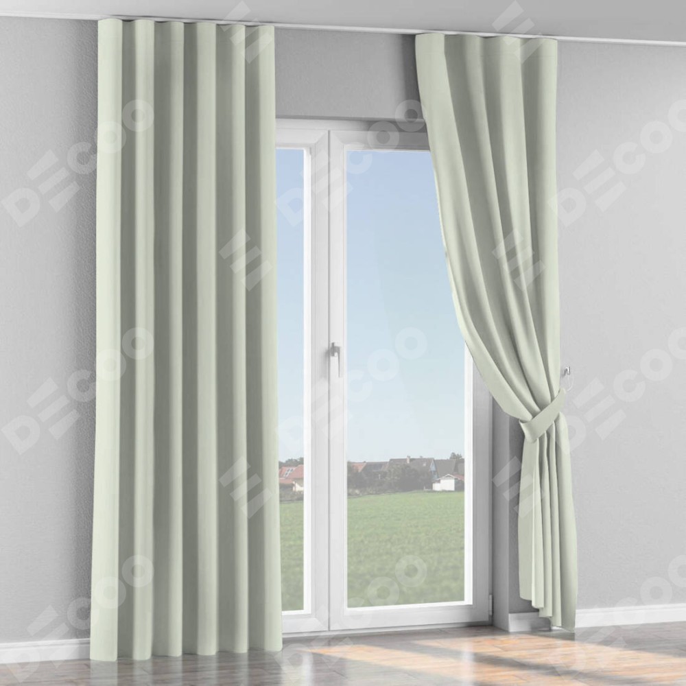 Комплект прямых штор, от производителя «Cortin», пошиты из ткани канвас сливочный, артикул ткани v-94. С изнаночной стороны в верхней части штор пристрачивается шторная лента с декоративными складками «Волна». Для создания элегантных складок прямые шторы шьются по стандарту с коэффициентом 1:2 (на 100 см. ширины проёма 200 см. ширины ткани).