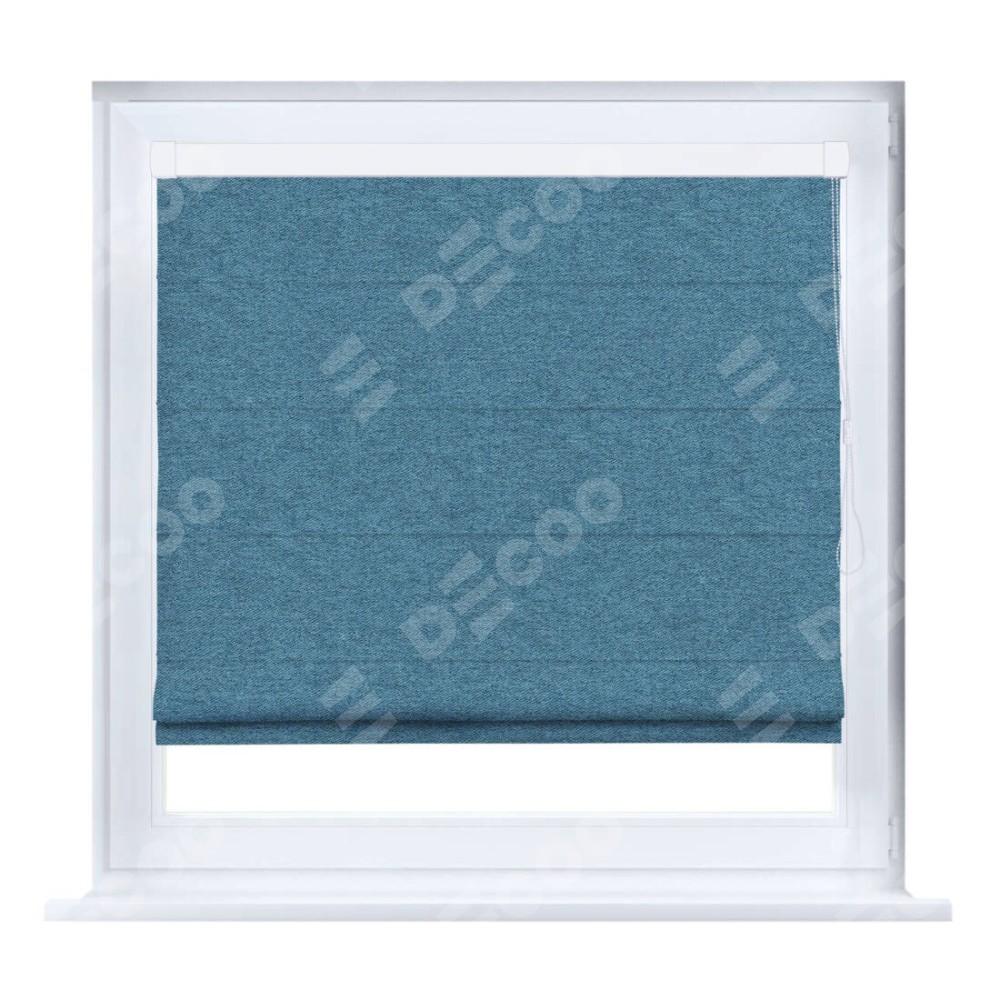 Римская штора производителя «Cortin», устанавливается на створку окна, пошита из ткани твид блэкаут светло-синий, артикул 90935. Штора шьётся по индивидуальным размерам, для данного типа римской шторы возможная ширина от 35 до 150 см., высота до 250 см.