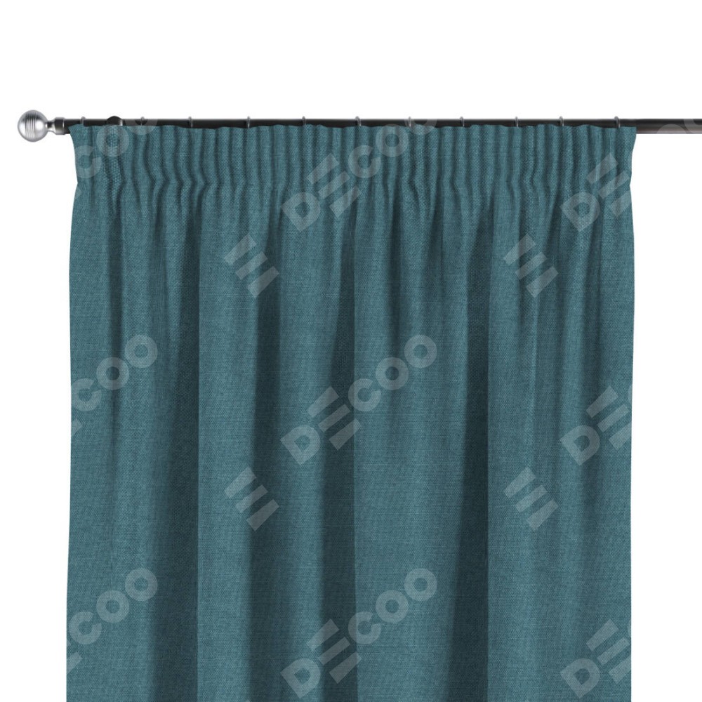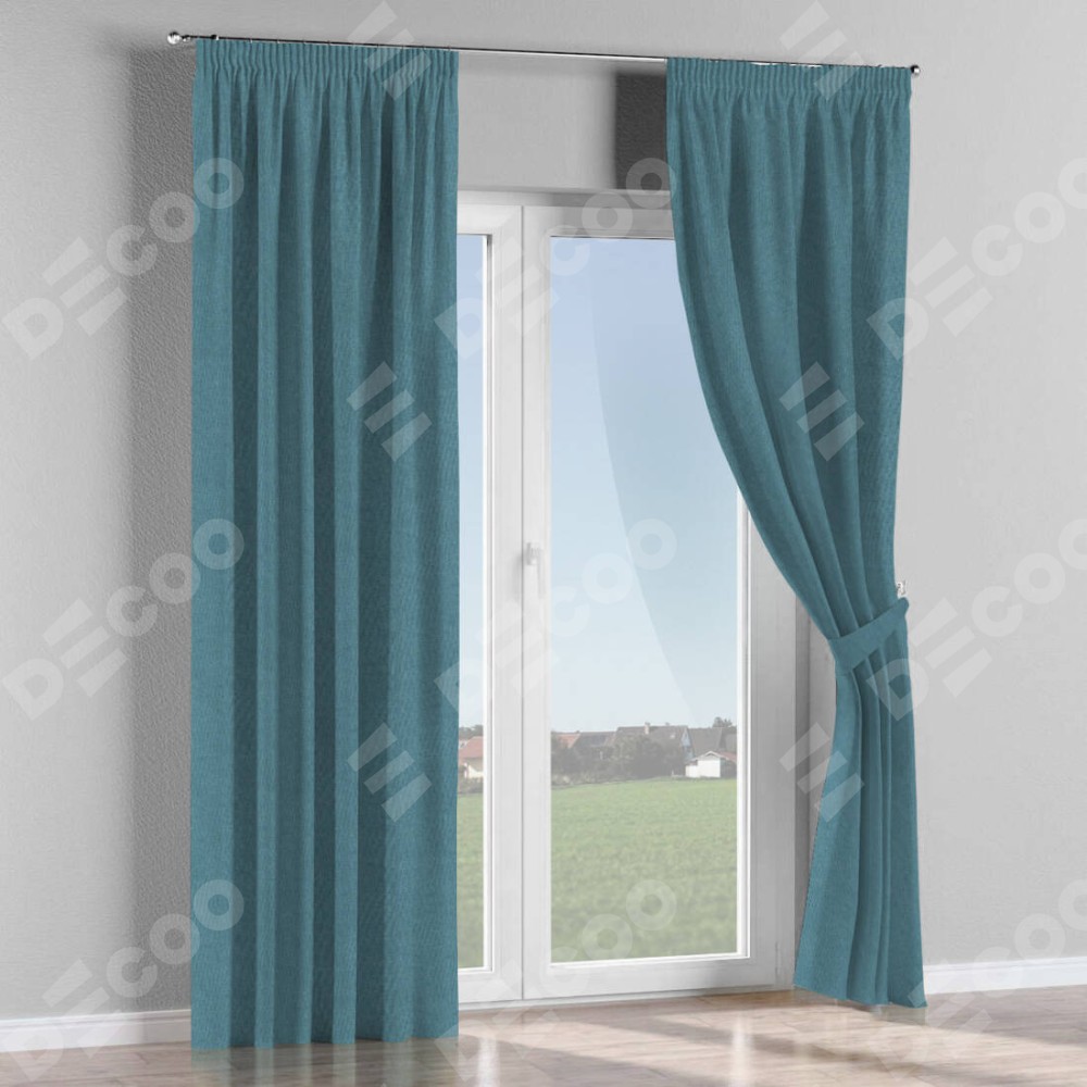 Комплект прямых штор, от производителя «Cortin», пошиты из ткани лён димаут светло-синий, артикул ткани 91007. С изнаночной стороны в верхней части штор пристрачивается шторная лента с декоративными складками «Карандаш». Для создания элегантных складок прямые шторы шьются по стандарту с коэффициентом 1:2 (на 100 см. ширины проёма 200 см. ширины ткани).