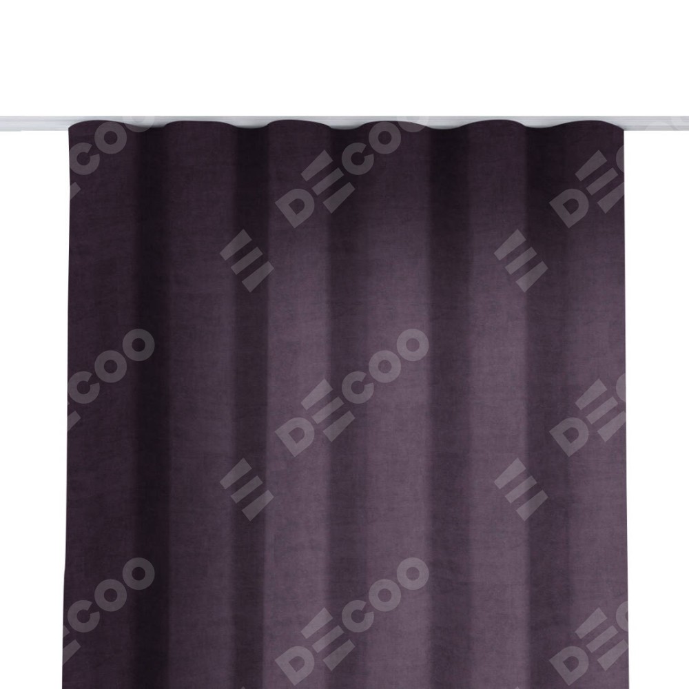 Комплект прямых штор, от производителя «Cortin», пошиты из ткани вельвет тёмно-фиолетовый, артикул ткани 72403. С изнаночной стороны в верхней части штор пристрачивается шторная лента с декоративными складками «Волна». Для создания элегантных складок прямые шторы шьются по стандарту с коэффициентом 1:2 (на 100 см. ширины проёма 200 см. ширины ткани).