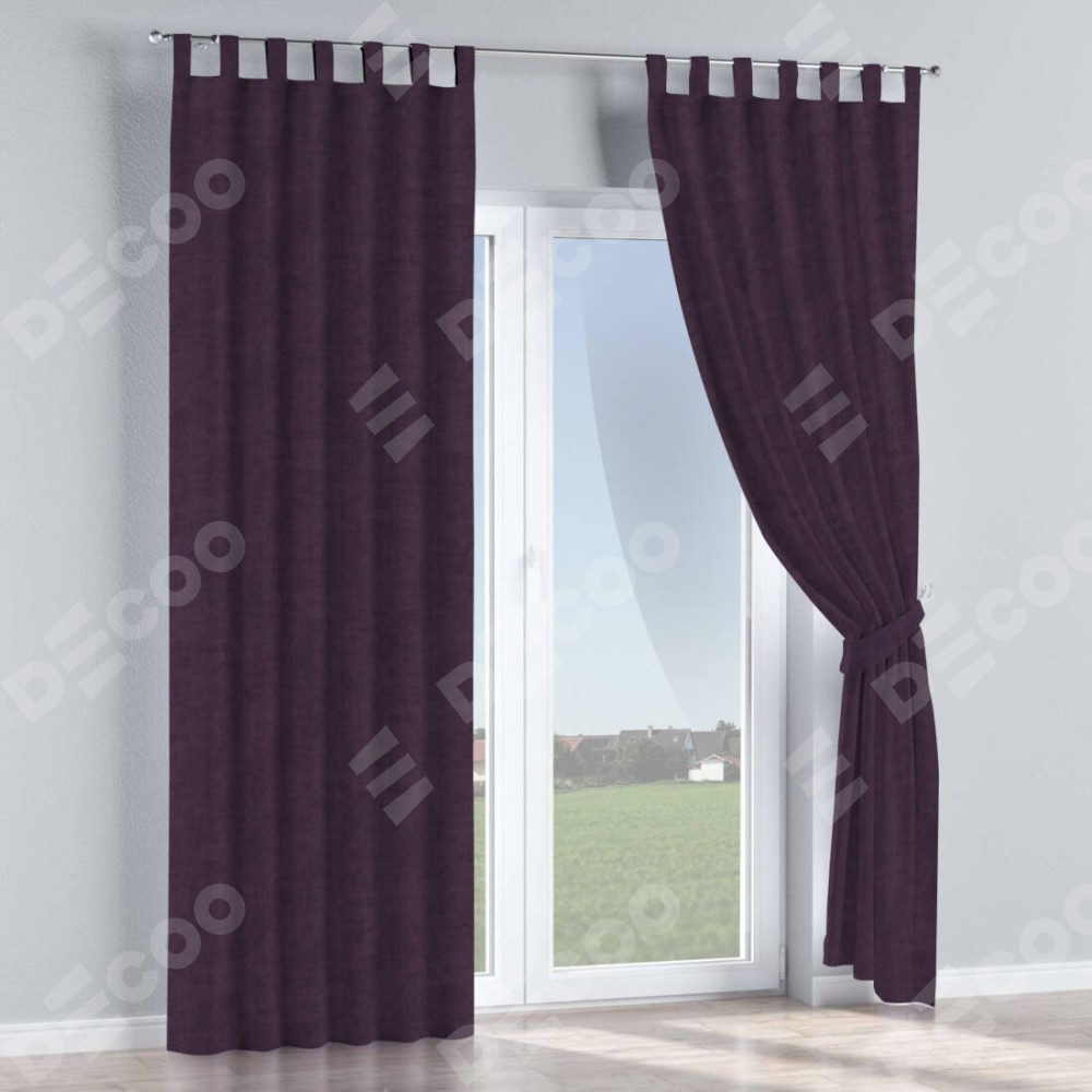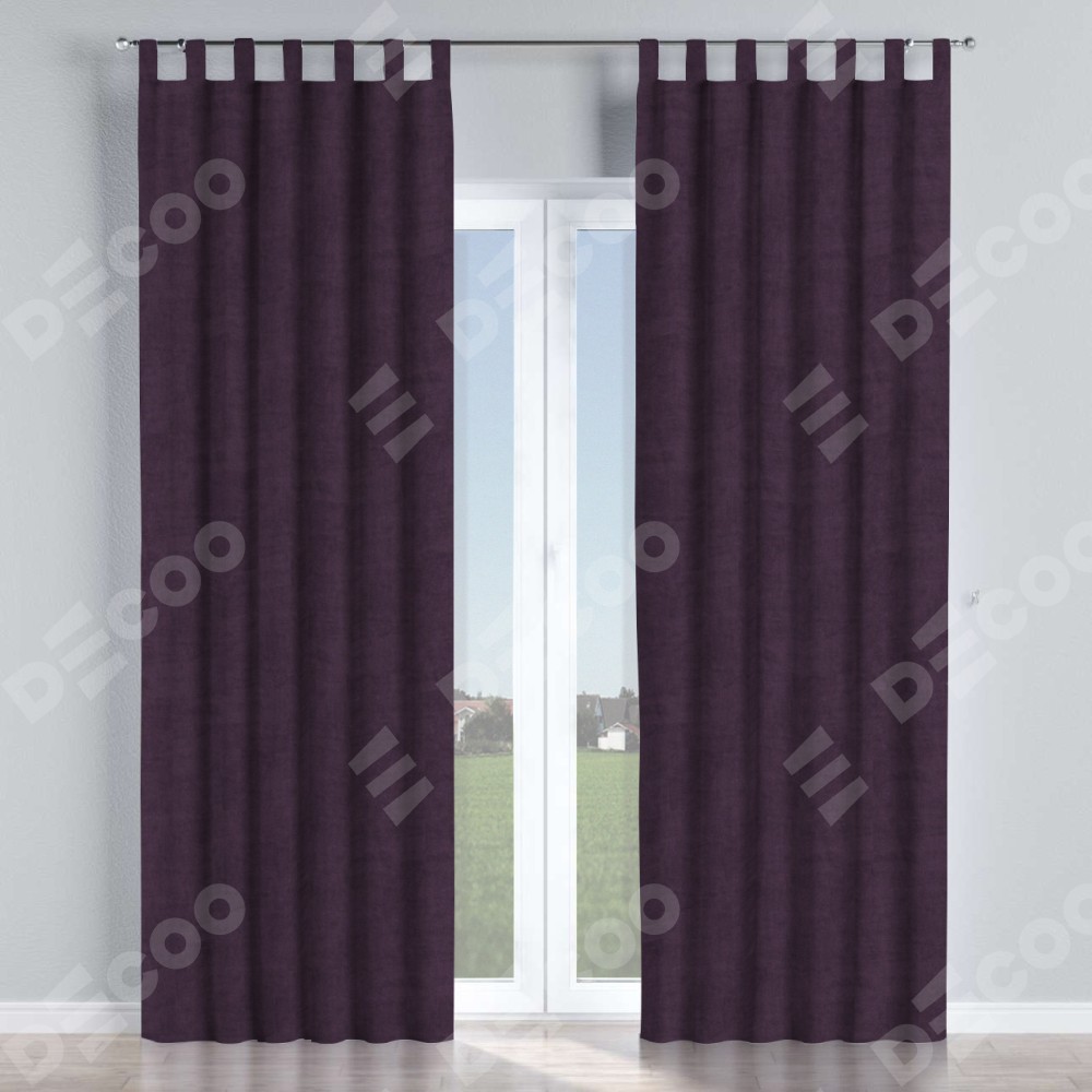Комплект прямых штор, от производителя «Cortin», пошиты из ткани вельвет тёмно-фиолетовый, артикул ткани 72403. Данная модель пошита на петлях, комплектуется на выбор круглым карнизом и подходит для монтажа на стену или потолок. Прямые шторы на петлях шьются по стандарту с коэффициентом 1/2 (на 100 см. ширины проёма 200 см. ширины ткани), отличительным преимуществом данной модели является простой способ монтажа. Достаточно повесить ее на трубу и штора готова!