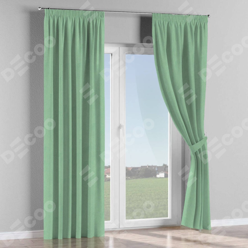 Комплект прямых штор, от производителя «Cortin», пошиты из ткани блэкаут однотонный ментоловый, артикул ткани 91572−1. С изнаночной стороны в верхней части штор пристрачивается шторная лента с декоративными складками «Карандаш». Для создания элегантных складок прямые шторы шьются по стандарту с коэффициентом 1:2 (на 100 см. ширины проёма 200 см. ширины ткани).