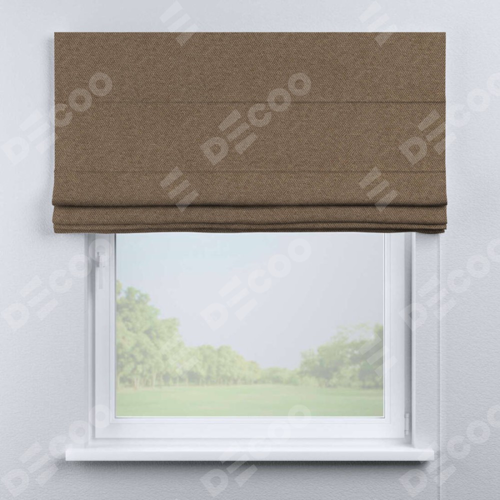 Классическая римская штора производителя «Cortin», пошита из ткани лён димаут коричневый, артикул: 90996. Имеет универсальный механизм и подходит для монтажа: на потолок, на стену и в нишу.