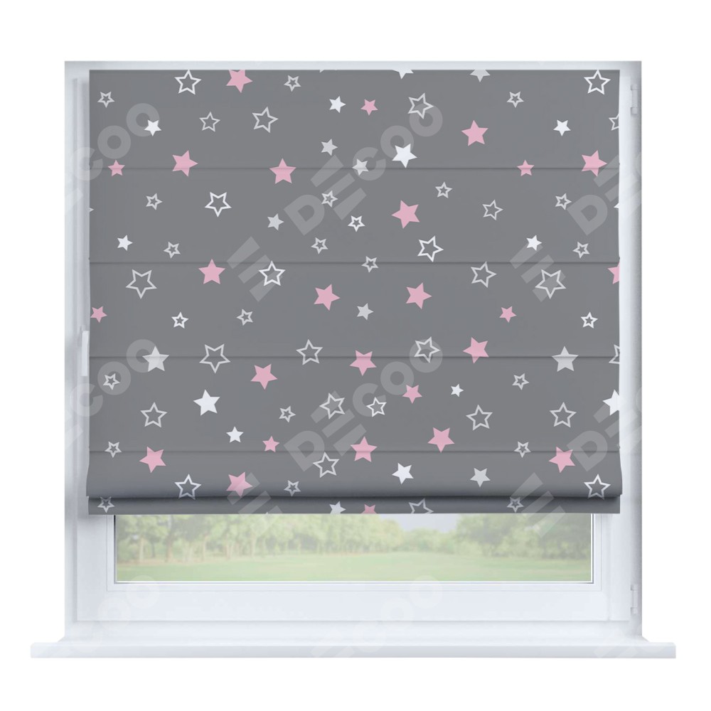 Римская штора производителя «Cortin», устанавливается на створку окна, пошита из ткани блэкаут с нанесением сублимационной печати «Розовый звездопад». Штора шьётся по индивидуальным размерам, для данного типа римской шторы возможная ширина от 35 до 150 см., высота до 250 см.