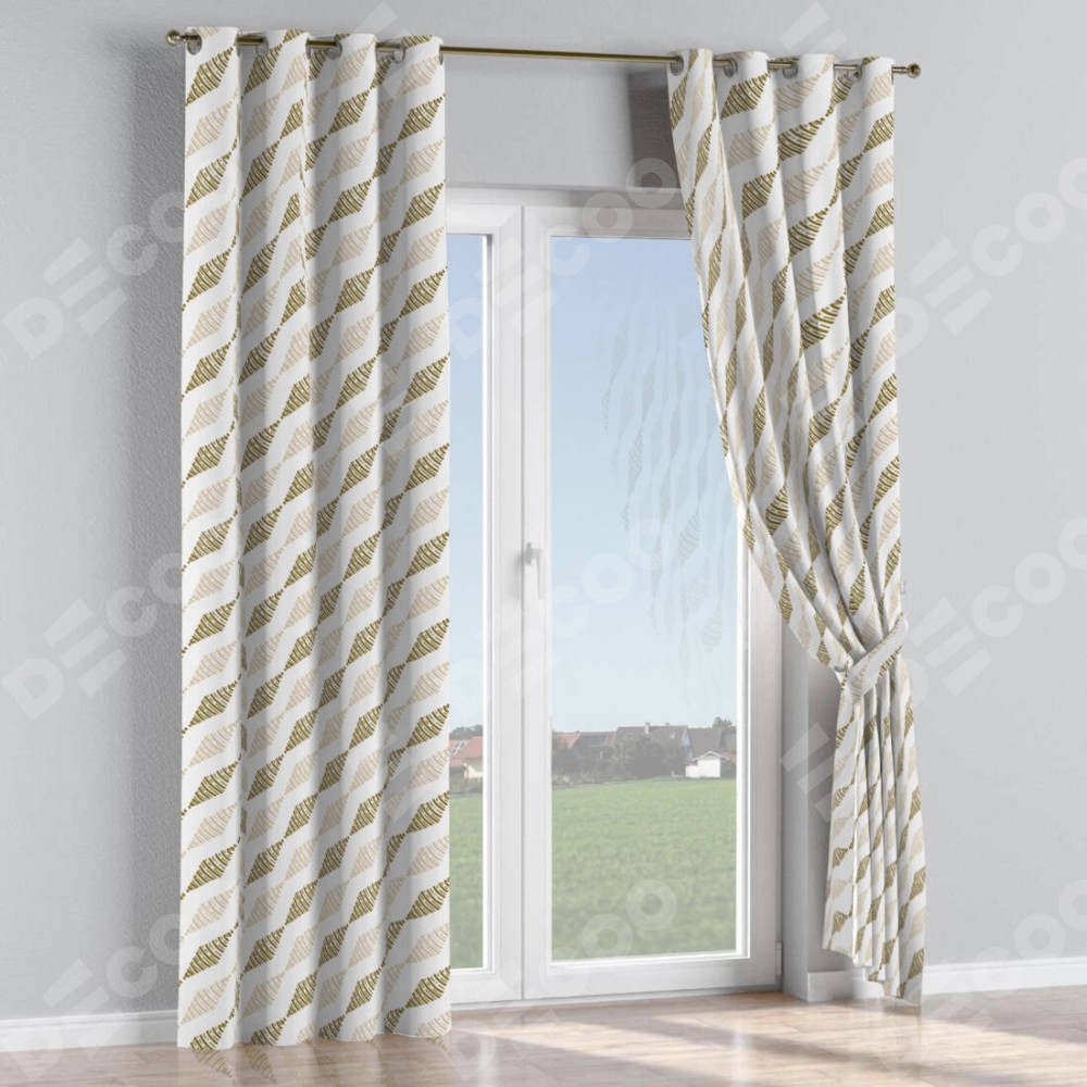 Длина карниза равна ширине окна плюс 30 — 50 см. При расчете длины штанги наконечники не учитываются. Для определения высоты штор измерьте расстояние от верхнего края карниза до пола и отнимите 1 см. Прибавьте 4 см (гребешок над люверсом) Это габаритный размер вашего изделия.