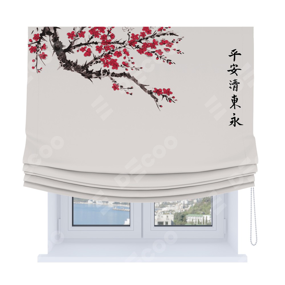 Римская штора Soft производителя «Cortin», используется для проёма, пошита из ткани блэкаут с нанесением сублимационной печати «Цветущая сакура». Имеет универсальный механизм и подходит для монтажа: на потолок, на стену и в нишу. В отличие от стандартных римских штор, римская штора Soft не имеет горизонтальных вставок и нижнего отвеса. Это позволяет ткани произвольно драпироваться в свободные мягкие складки.