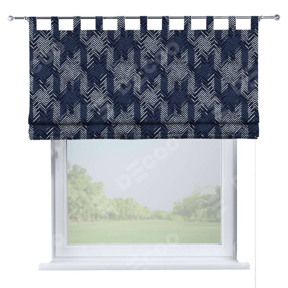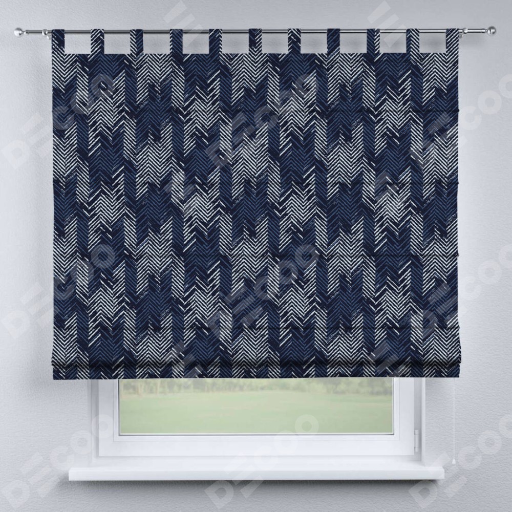 Римская штора производителя «Cortin», используется для проёма, пошита из ткани блэкаут с нанесением сублимационной печати «Пёстрый зигзаг». Данная модель пошита на петлях, комплектуется на выбор круглым карнизом и подходит для монтажа на стену. Римская штора на петлях имеет простую систему регулировки высоты, отличительным преимуществом данной модели является простой способ монтажа. Достаточно повесить ее на трубу и штора готова!
