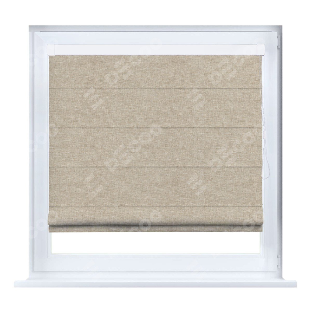 Римская штора кассетного типа, производителя «Cortin», устанавливается только на пластиковые окна и прилегает к стеклопакету, пошита из ткани лён кашемир бежевый, артикул 17206.