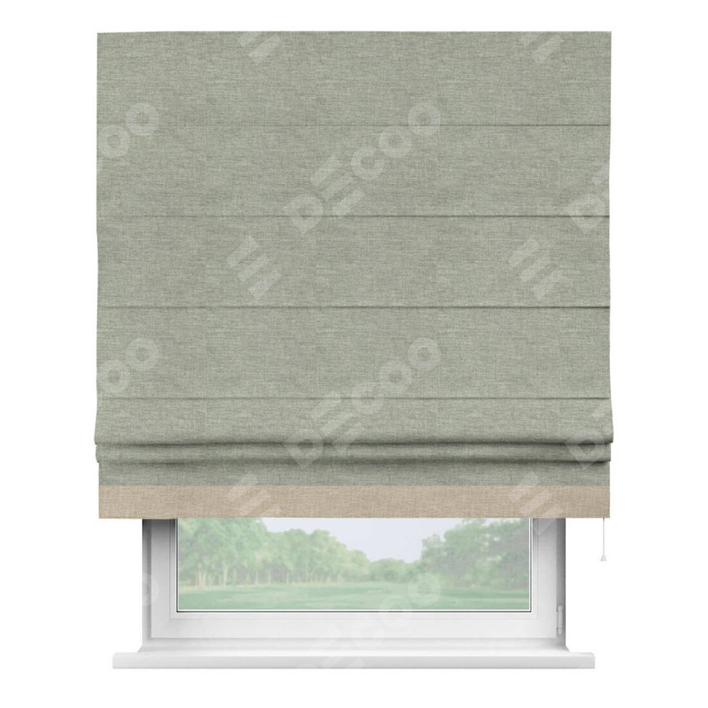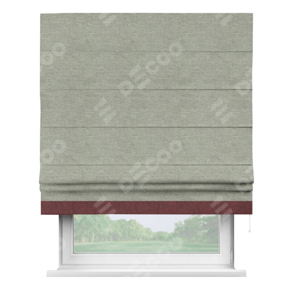 Римская штора производителя «Cortin», используется для проёма, пошита из ткани лён кашемир серый new, артикул 21618. Отделка шторы кантом «Джестер», ткань для канта используется из льна разной расцветки на выбор. Имеет универсальный механизм и подходит для монтажа: на потолок, на стену и в нишу.