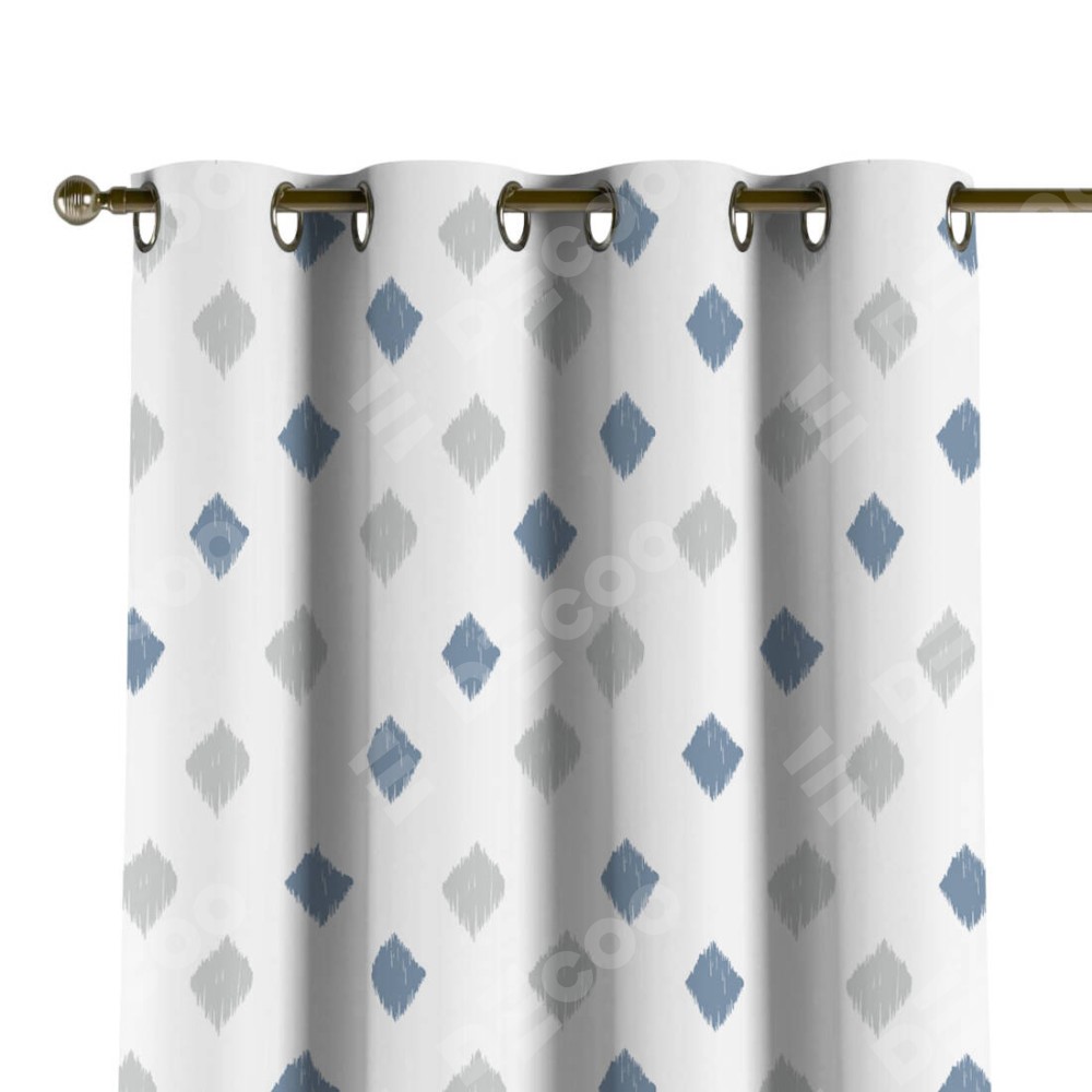 Комплект прямых штор, от производителя «Cortin», пошиты из ткани блэкаут с нанесением сублимационной печати «Икат ромбики». Данная модель пошита на люверсах, комплектуется на выбор круглым карнизом и подходит для монтажа на стену или потолок. Прямые шторы на люверсах шьются по стандарту с коэффициентом 1/2 (на 100 см. ширины проёма 200 см. ширины ткани), отличительным преимуществом данной модели является простой способ монтажа. Достаточно повесить ее на трубу и штора готова!