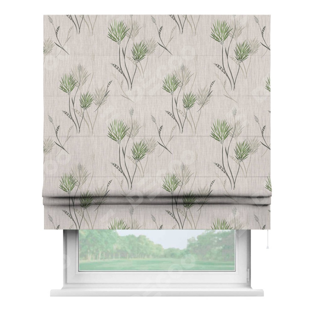 Классическая римская штора производителя «Cortin», пошита из ткани блэкаут с нанесением сублимационной печати «Полевые травы бежевый». Имеет универсальный механизм и подходит для монтажа: на потолок, на стену и в нишу.