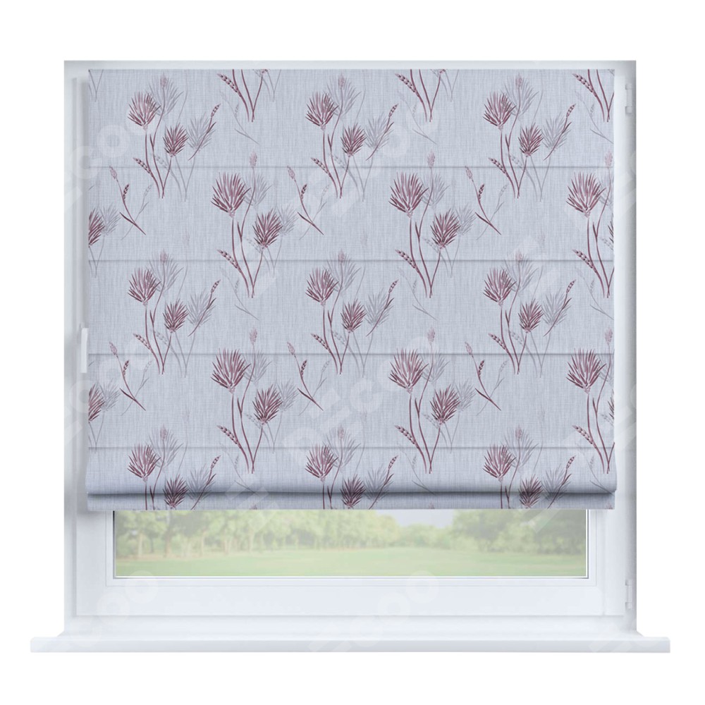 Римская штора производителя «Cortin», устанавливается на створку окна, пошита из ткани блэкаут с нанесением сублимационной печати «Полевые травы серый». Штора шьётся по индивидуальным размерам, для данного типа римской шторы возможная ширина от 35 до 150 см., высота до 250 см.