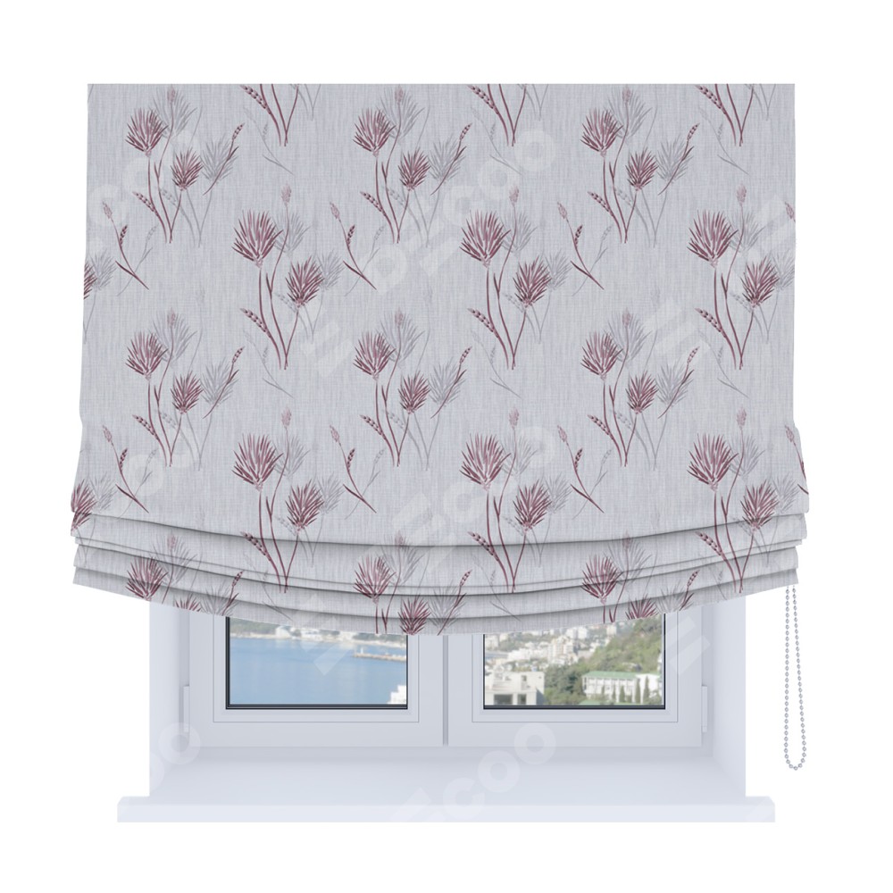 Римская штора Soft производителя «Cortin», используется для проёма, пошита из ткани блэкаут с нанесением сублимационной печати «Полевые травы серый». Имеет универсальный механизм и подходит для монтажа: на потолок, на стену и в нишу. В отличие от стандартных римских штор, римская штора Soft не имеет горизонтальных вставок и нижнего отвеса. Это позволяет ткани произвольно драпироваться в свободные мягкие складки.