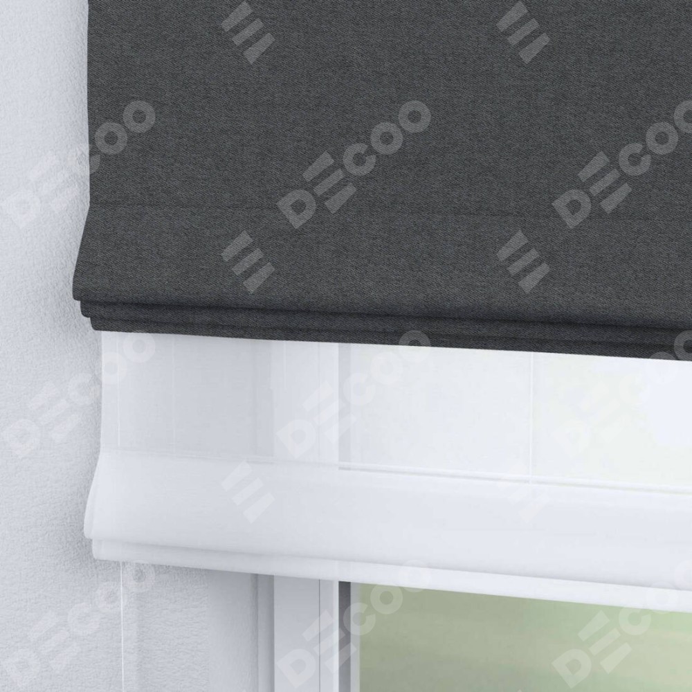 Двойная римская штора «День-ночь» от производителя Cortin предназначена для использования в проёмах. Эта штора уникальна тем, что состоит из двух полотен. На лицевой стороне находится твид блэкаут тёмно-серый (артикул: 90938), обеспечивающий эффективное затемнение. В комплект также входит вторая ткань — легкий белый тюль (артикул: V-01), который добавляет изящества и легкости оформлению окна. Кроме того, доступны и другие разновидности ткани тюль, выбор которых доступен по ссылке .