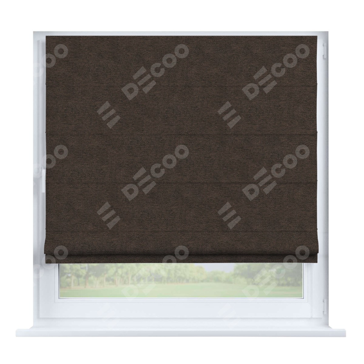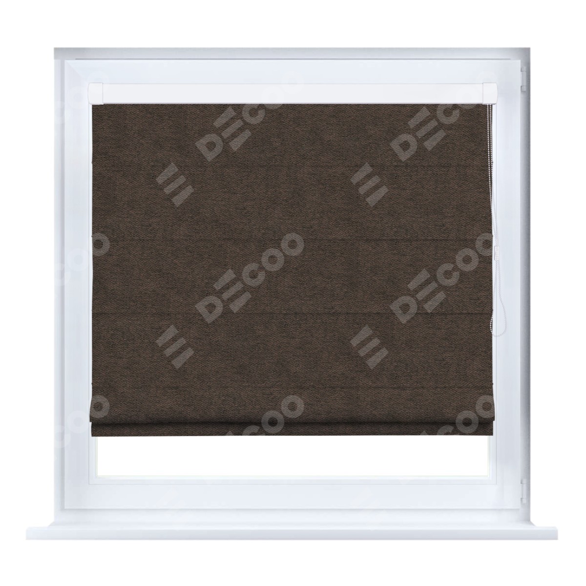 Римская штора производителя «Cortin», устанавливается на створку окна, пошита из ткани твид блэкаут тёмно-коричневый, артикул 90933. Штора шьётся по индивидуальным размерам, для данного типа римской шторы возможная ширина от 35 до 150 см., высота до 250 см.
