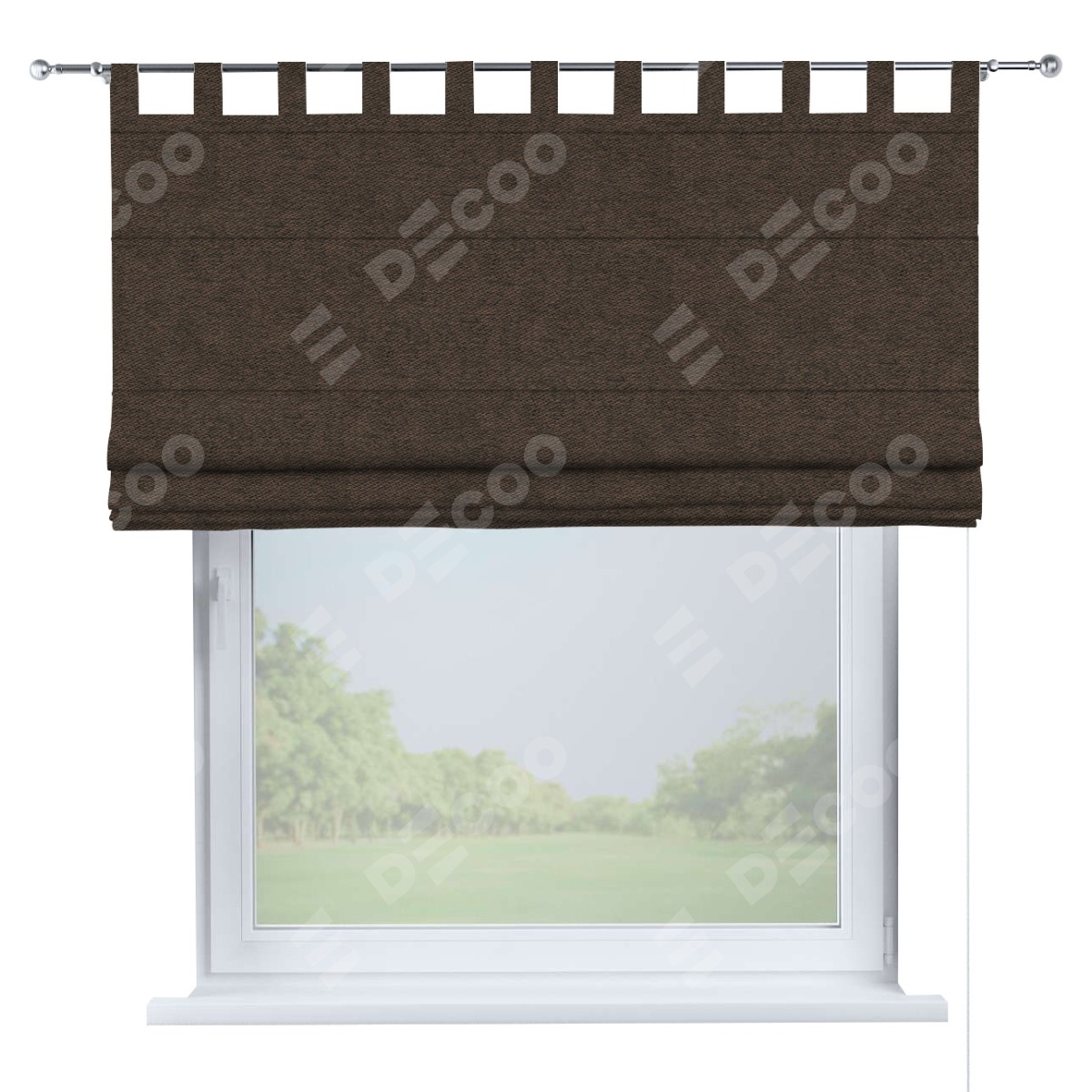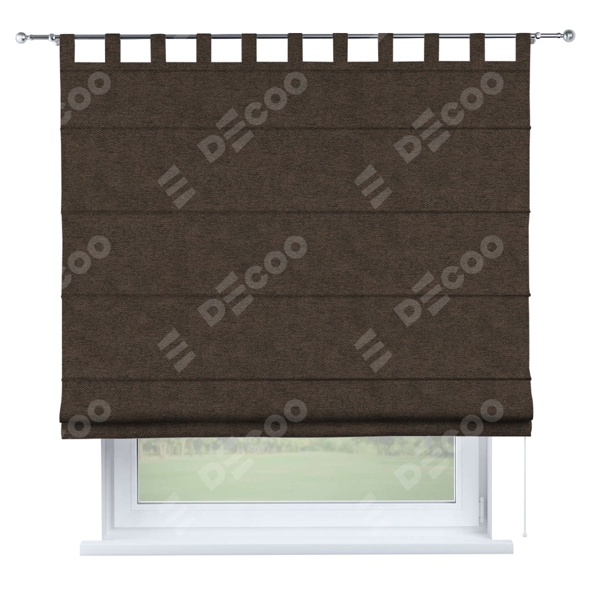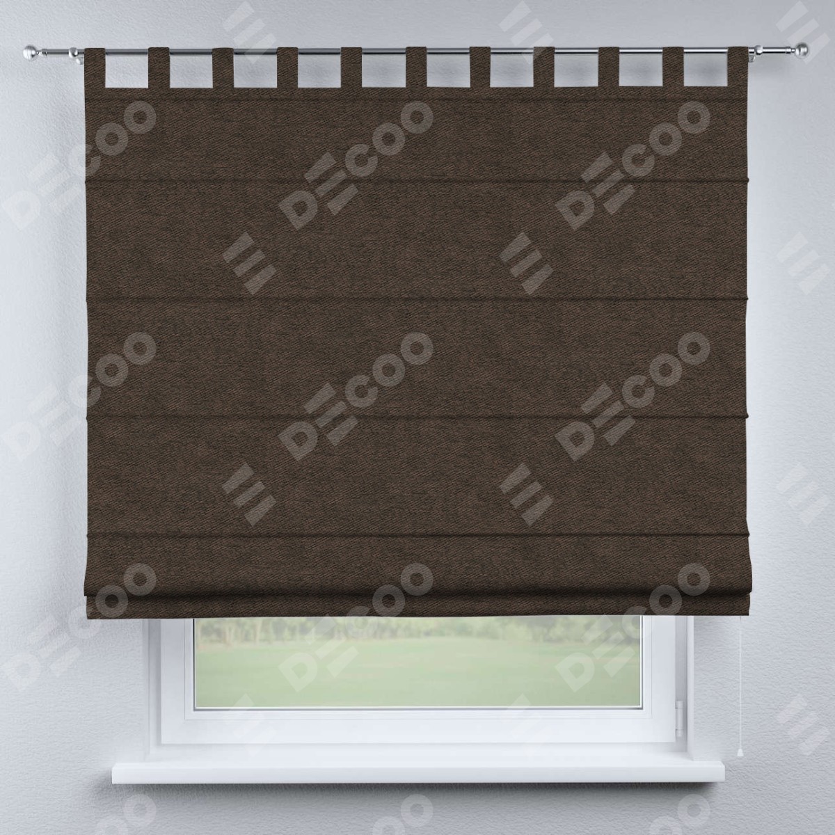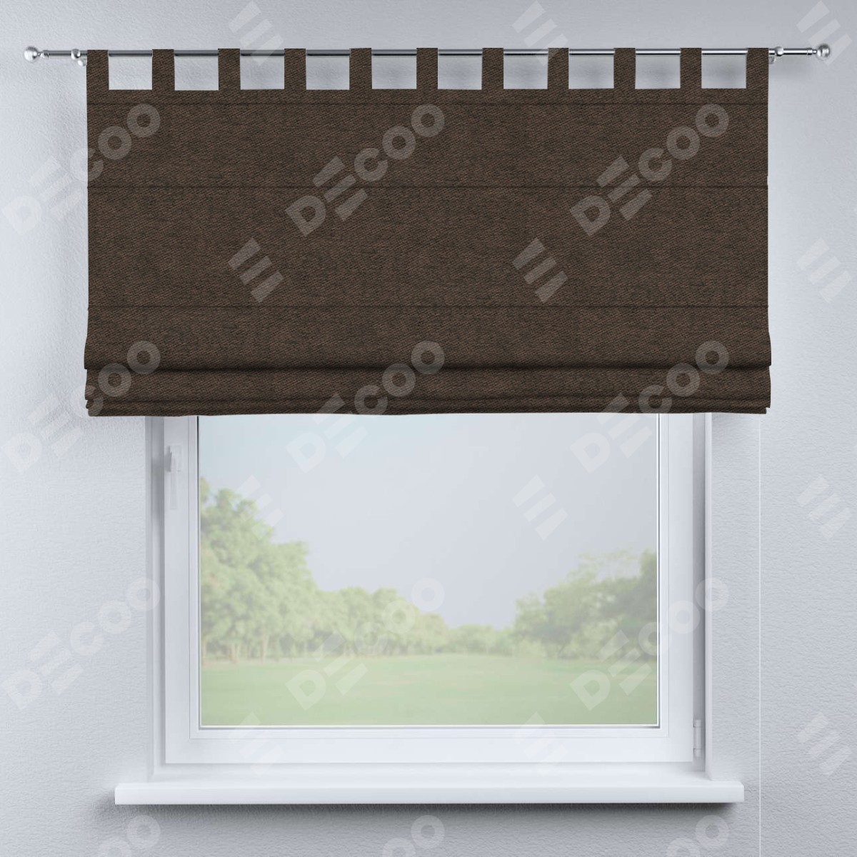 Римская штора производителя «Cortin», используется для проёма, пошита из ткани твид блэкаут тёмно-коричневый, артикул ткани 90933. Данная модель пошита на петлях, комплектуется на выбор круглым карнизом и подходит для монтажа на стену. Римская штора на петлях имеет простую систему регулировки высоты, отличительным преимуществом данной модели является простой способ монтажа. Достаточно повесить ее на трубу и штора готова!