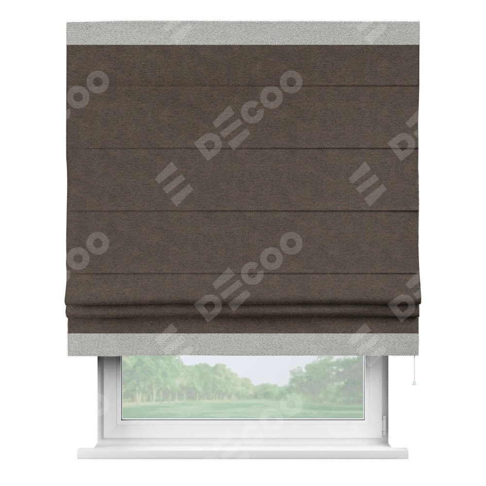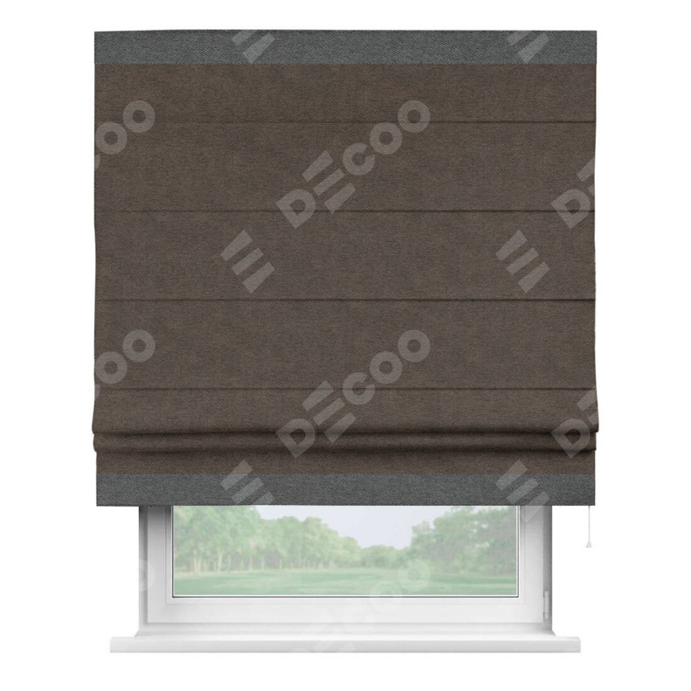 Римская штора «Кортин» для проема, твид блэкаут тёмно-коричневый, с кантом Горизонт