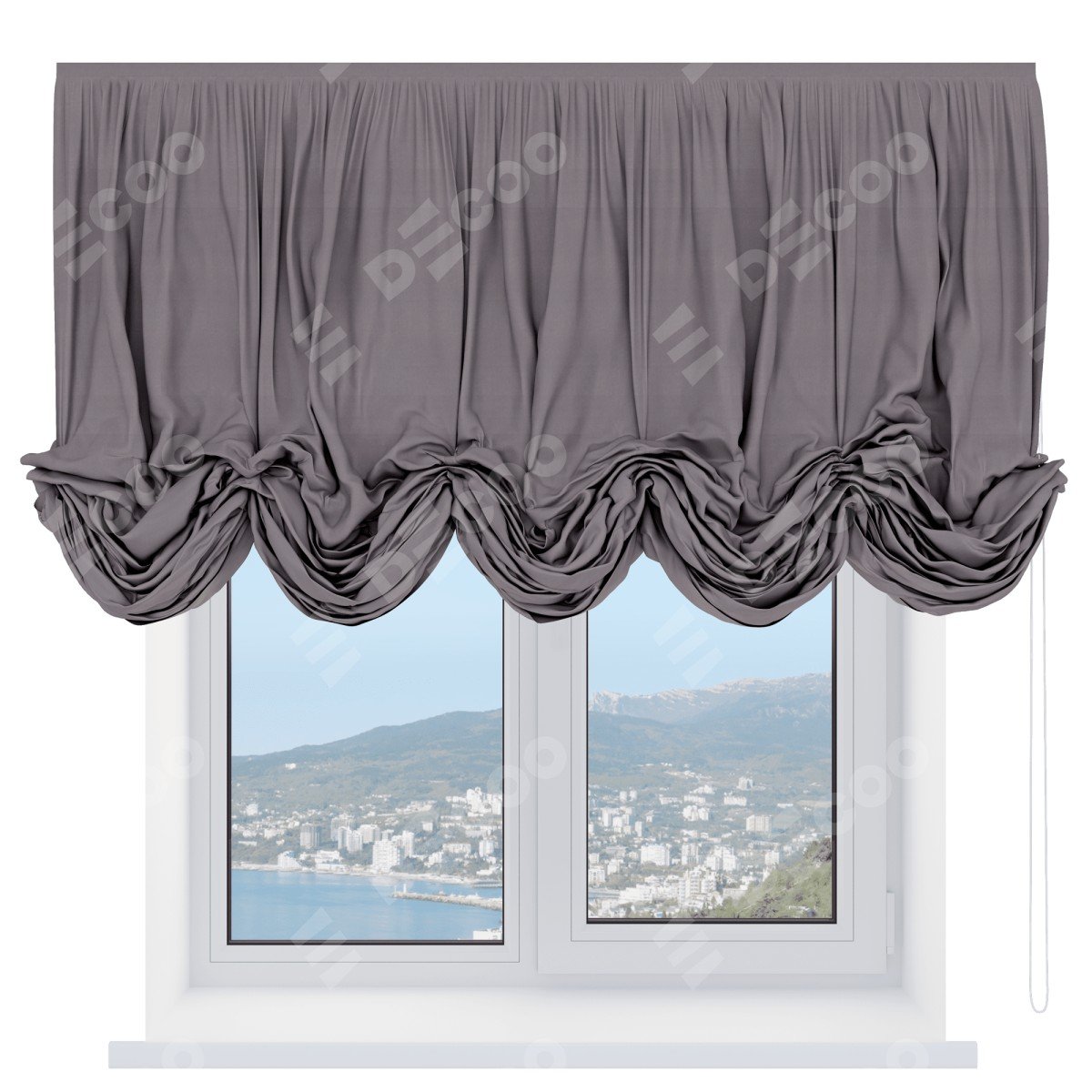 — Для проёма: Замер ширины — к ширине проёма добавьте +10 см. (по +5 см. на каждую сторону); Замер высоты — замерьте габаритную высоту шторы с собранными фестонами (карниз входит в габаритную высоту шторы)