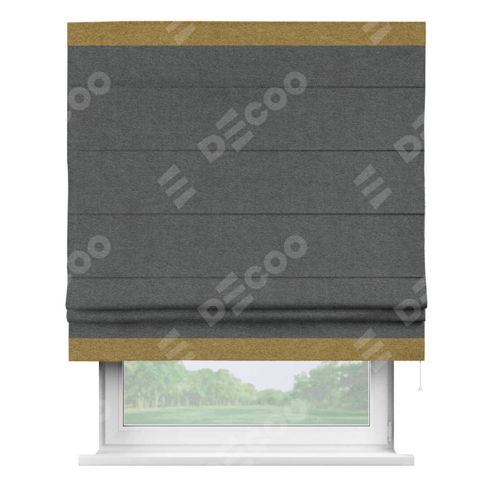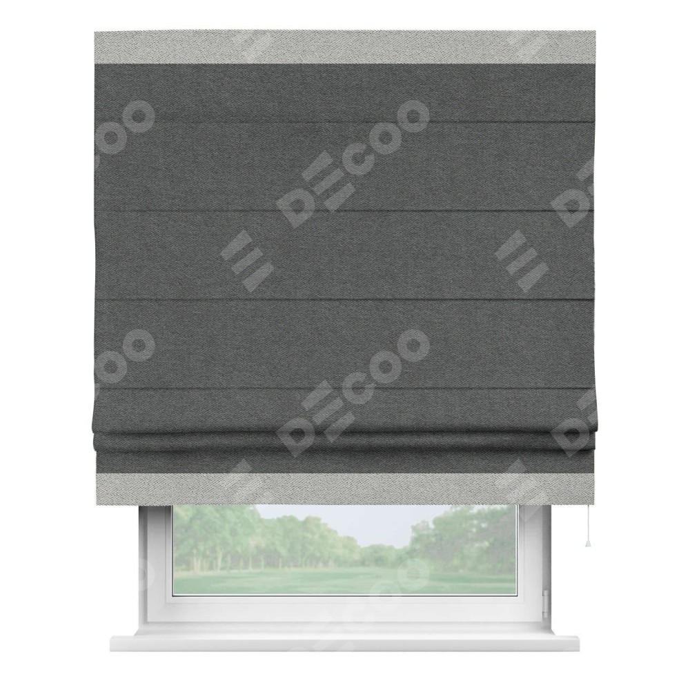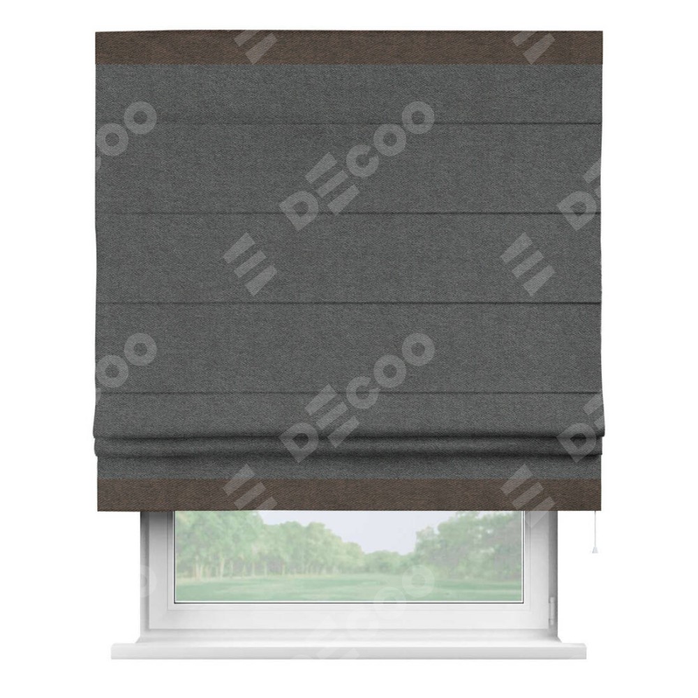 Римская штора «Кортин» для проема, твид блэкаут тёмно-серый, с кантом Горизонт
