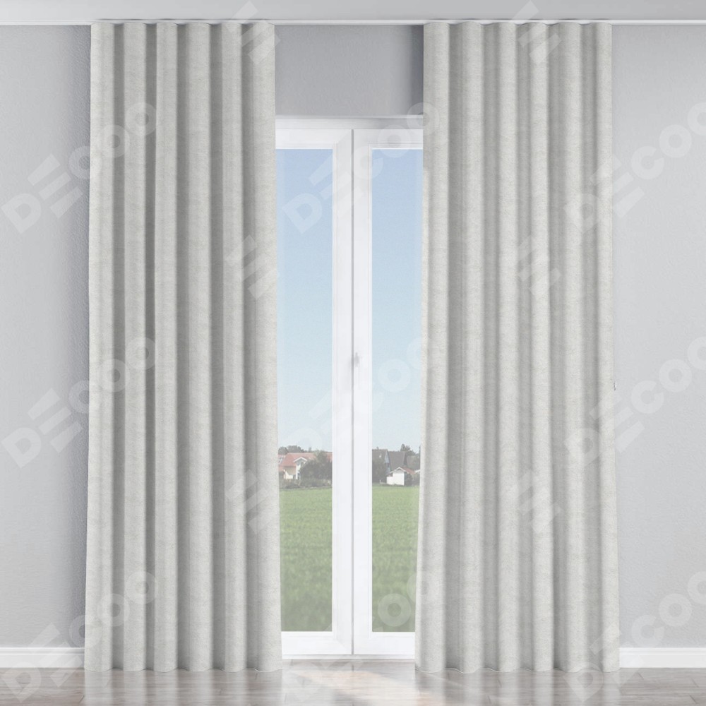 Комплект прямых штор, от производителя «Cortin», пошиты из ткани софт мрамор белый, артикул ткани 93581. С изнаночной стороны в верхней части штор пристрачивается шторная лента с декоративными складками «Волна». Для создания элегантных складок прямые шторы шьются по стандарту с коэффициентом 1:2 (на 100 см. ширины проёма 200 см. ширины ткани).