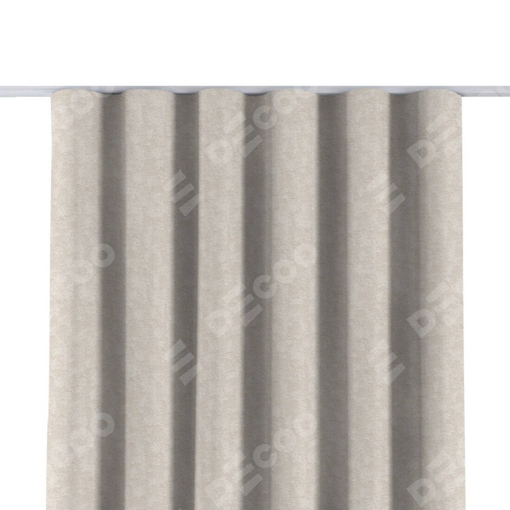 Комплект прямых штор, от производителя «Cortin», пошиты из ткани софт мрамор кремовый, артикул ткани 93574. С изнаночной стороны в верхней части штор пристрачивается шторная лента с декоративными складками «Волна». Для создания элегантных складок прямые шторы шьются по стандарту с коэффициентом 1:2 (на 100 см. ширины проёма 200 см. ширины ткани).