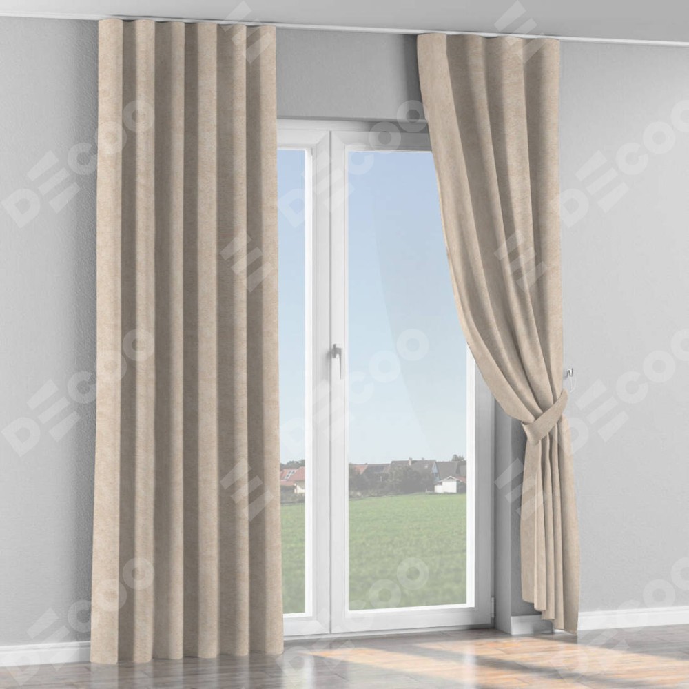 Комплект прямых штор, от производителя «Cortin», пошиты из ткани софт мрамор шампань, артикул ткани 93575. С изнаночной стороны в верхней части штор пристрачивается шторная лента с декоративными складками «Волна». Для создания элегантных складок прямые шторы шьются по стандарту с коэффициентом 1:2 (на 100 см. ширины проёма 200 см. ширины ткани).